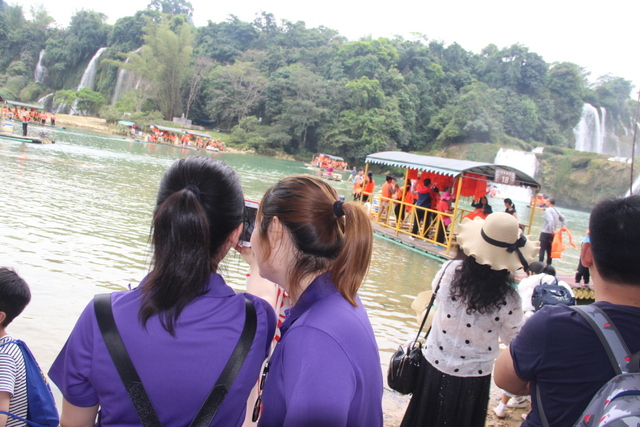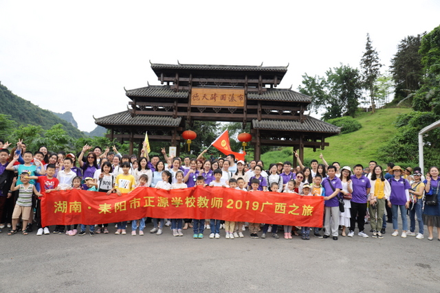 中午时分,正源学校教师2019广西之旅团队来到德天壮乡古寨,在那里领略纯正的壮乡风情,享用壮王宴特色午餐。