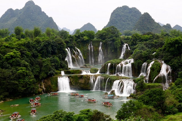 德天跨国瀑布位于广西崇左市大新县硕龙镇德天村,亚洲第一、世界第四大的跨国瀑布。这座神奇而美妙的瀑布,如同仙境般的坐落在中越边境上,气势磅礴、颇为壮观。