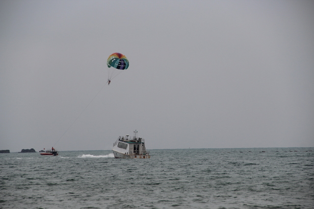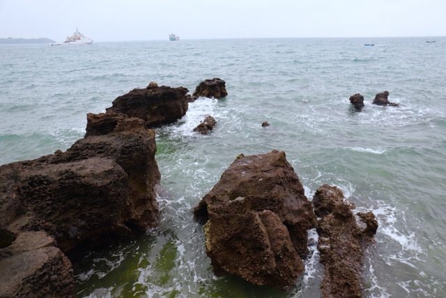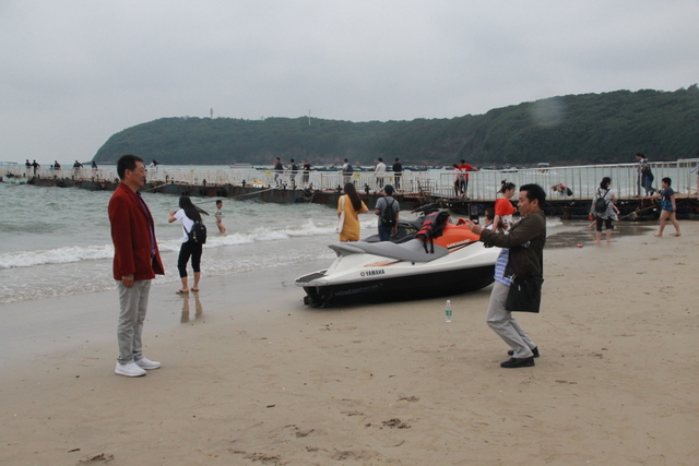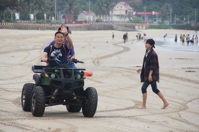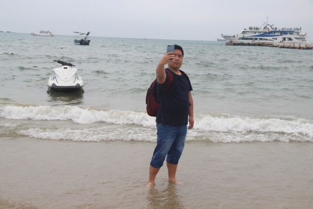 从海螺口海滩上岸,已是午餐时间,驱车3分钟到贝壳沙滩,一边享受午餐,一边欣赏海景。此情此景,真是陶醉了。
