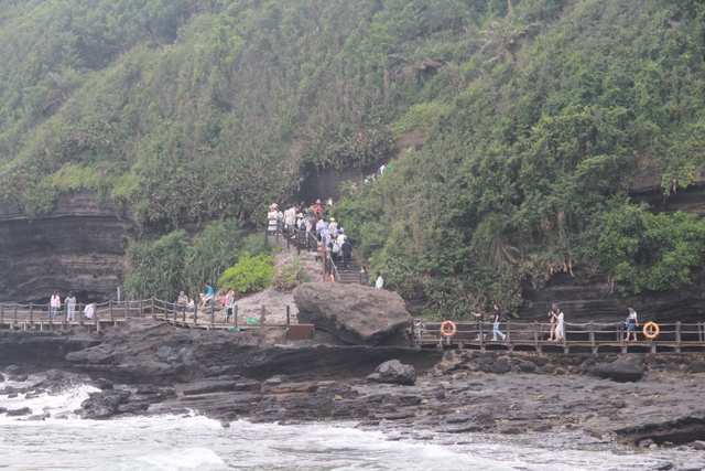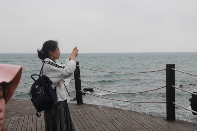 下午,老师们就登上了鳄鱼山。一路上,步道两旁花团锦簇、蝴蝶纷飞,让人心情愉悦。鳄鱼山背面是陡峭的悬崖,沿步道而下,就来到了火山口地质公园,沿海而行,给人一种穿越的感觉,火山口景观、海蚀景观,让人流连忘返。
