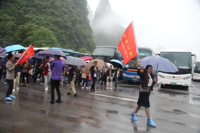 刚一下车,抬头望去,眼前就是一幅动态的水墨山水画卷,烟雨朦胧,薄雾轻饶,让人无不发出“葱茏屏列丹青画,恍惚峰飞伶俐人”的感慨。