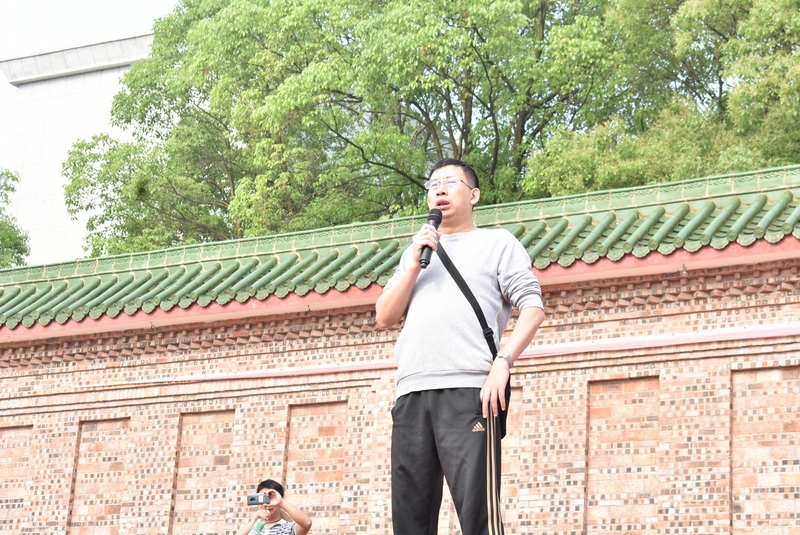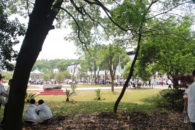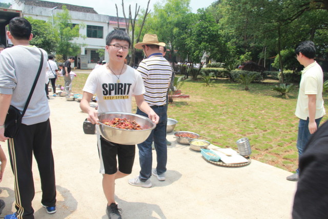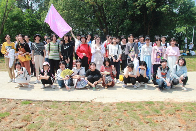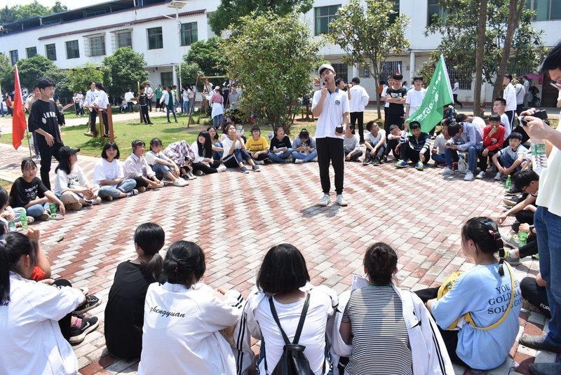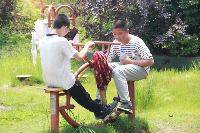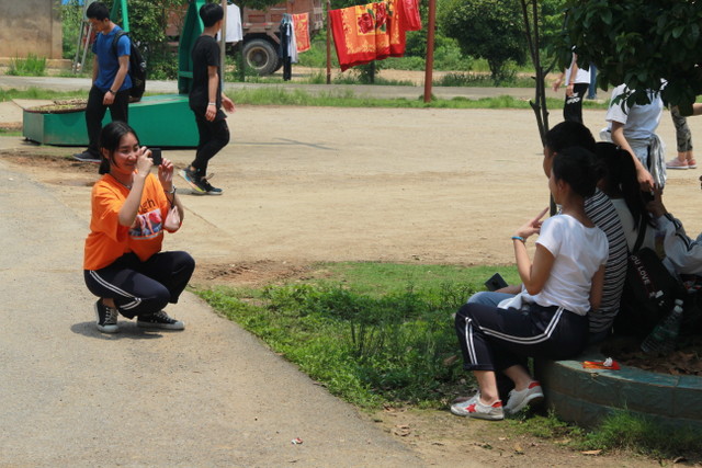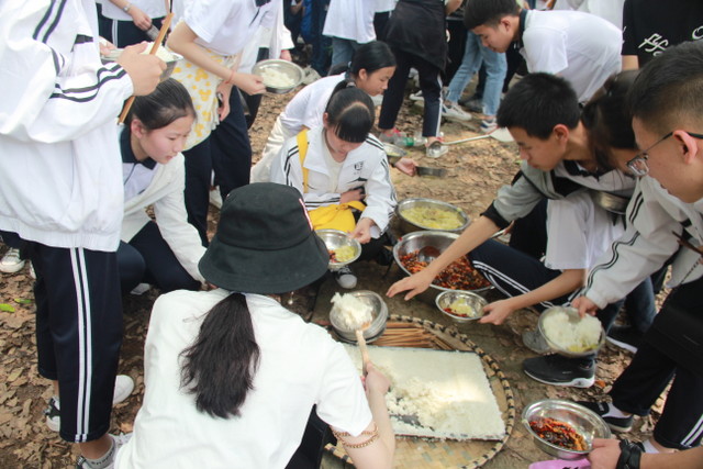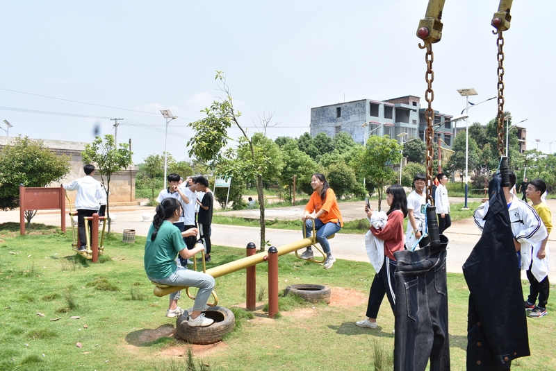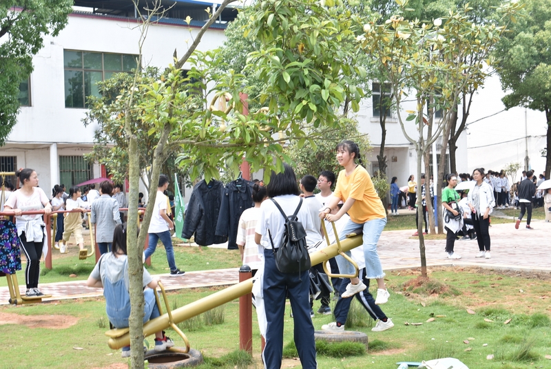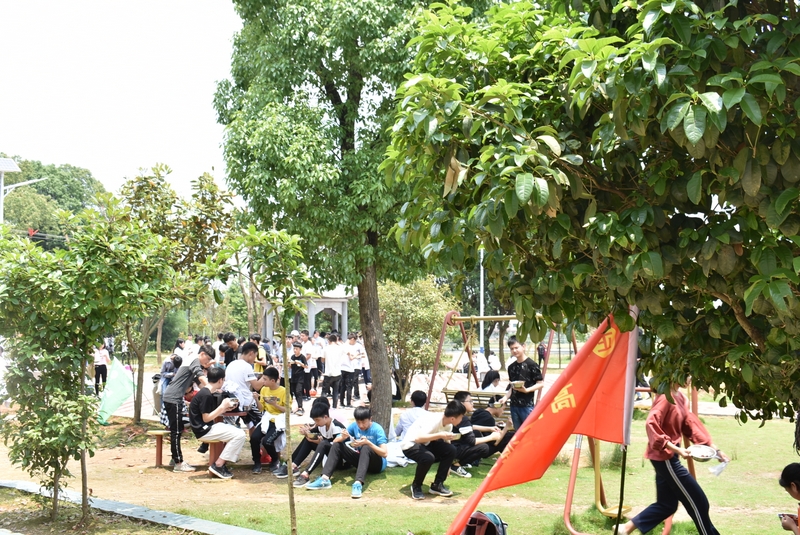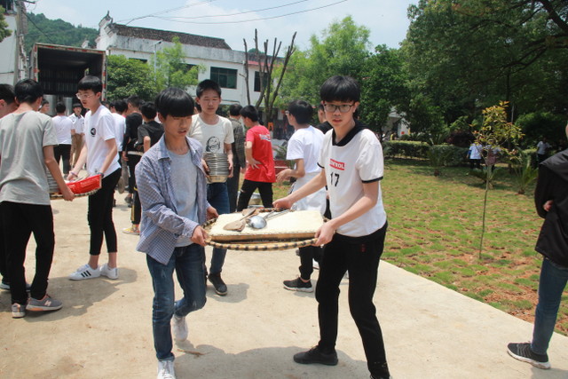 吃过午饭,照完班级集体照后,各班开始自行组织文娱活动。只见同学们围成一圈,挨个展示自己的才艺,或一展歌喉,或一展舞姿,每场show time结束后都会博得满堂喝彩。有的同学在广场娱乐区玩起了跷跷板,回味童年的味道;有的同学直接在广场的铁杆上做起了引体向上,展示健壮身躯;还有的同学三两成群的在篮球场上挥洒汗水,展现青春活力。各位老师也都是八仙过海,各显神通,罗经飞主任更是化成街头卖艺歌手,倾情为大家演唱了一首《我爱你中国》,收获了不少粉丝,同学们有钱的“捐钱”,有力的出力,为他们的“飞哥”喝彩。