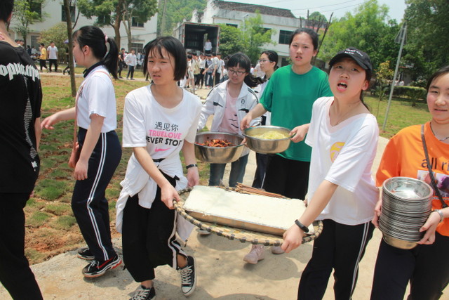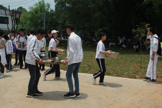 近十二点,经过两个多小时的艰苦跋涉,全体师生终于平安到达目的地,得到了暂时的休整。学校食堂送来可口的午餐,同学们吃得津津有味。