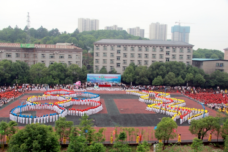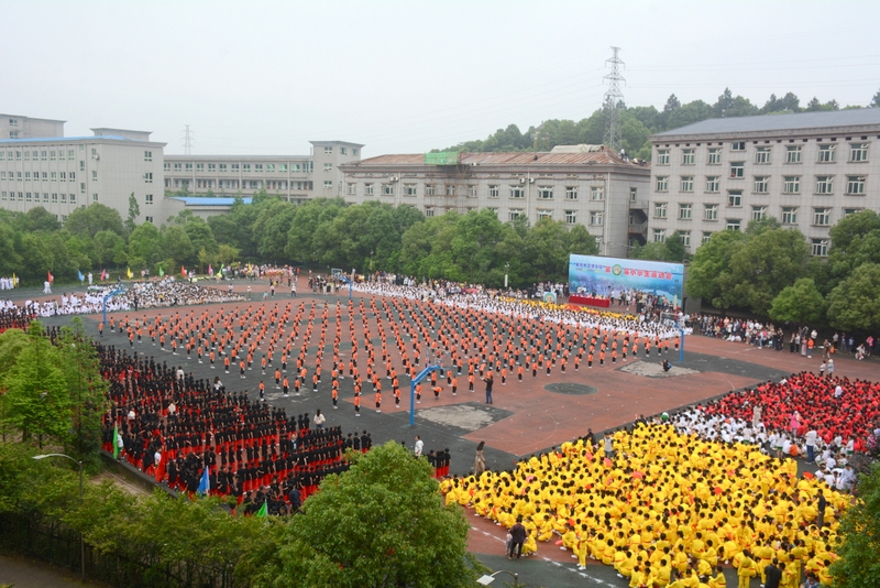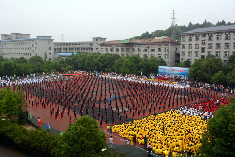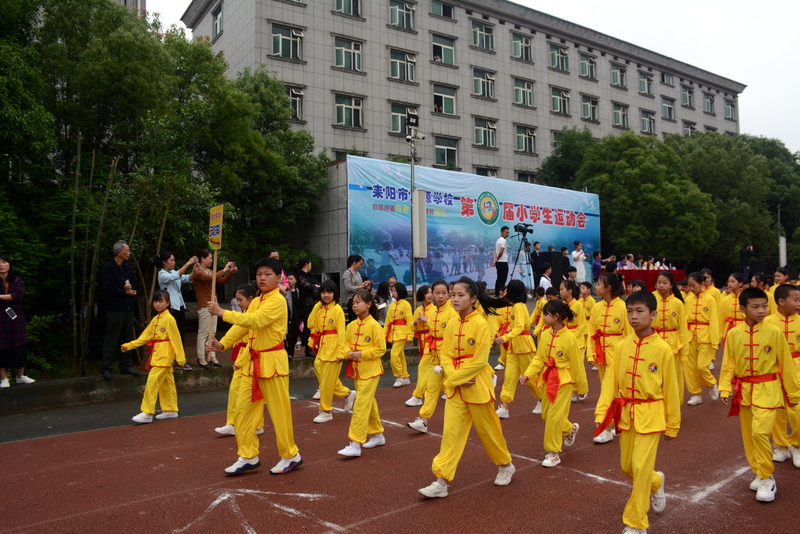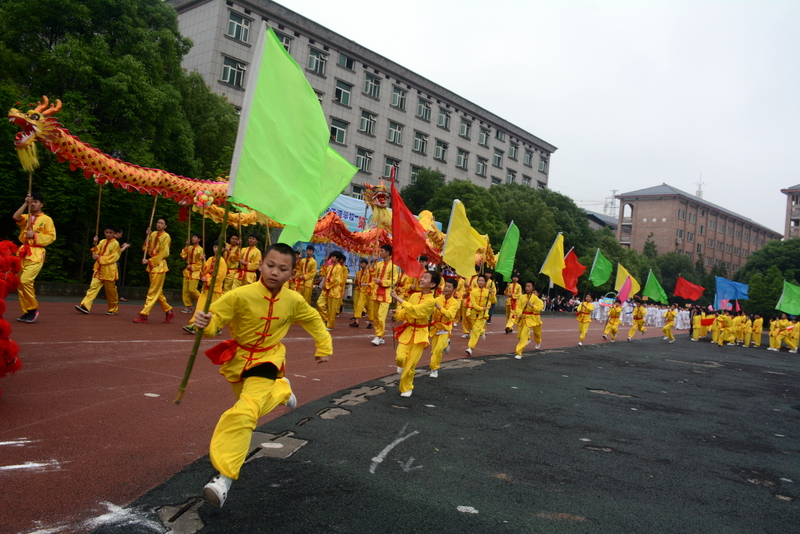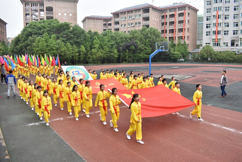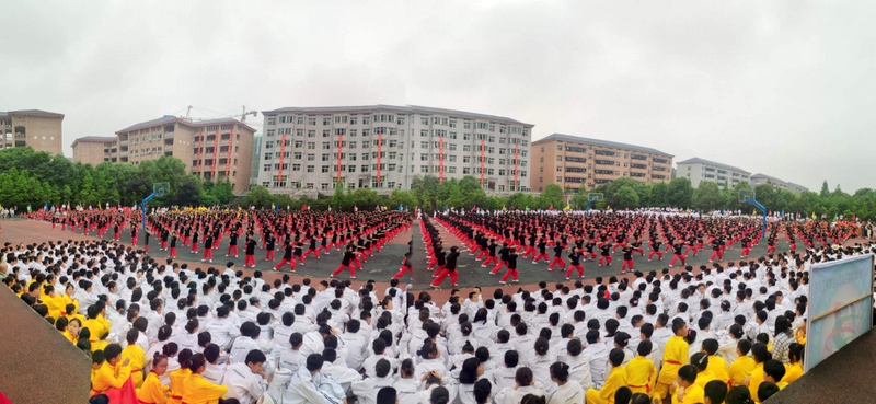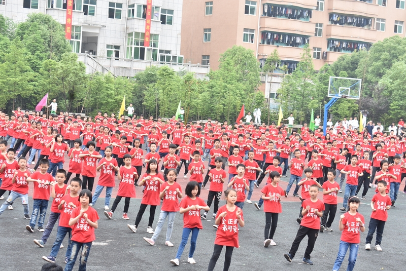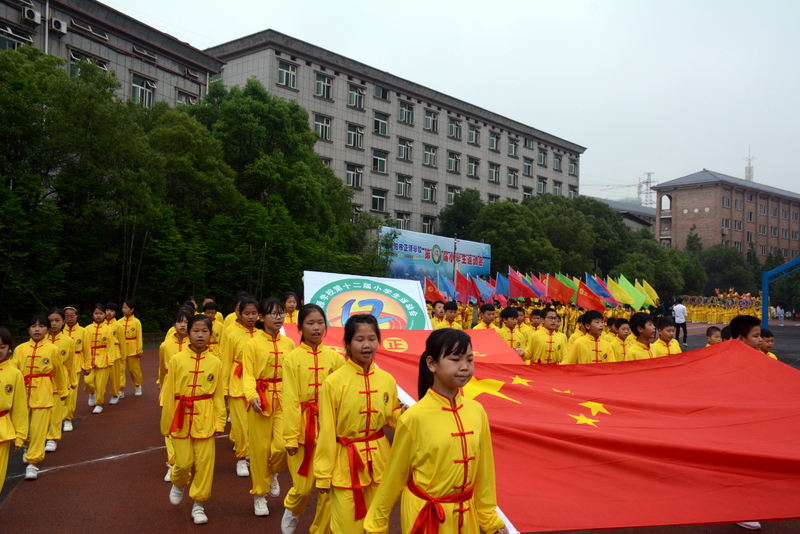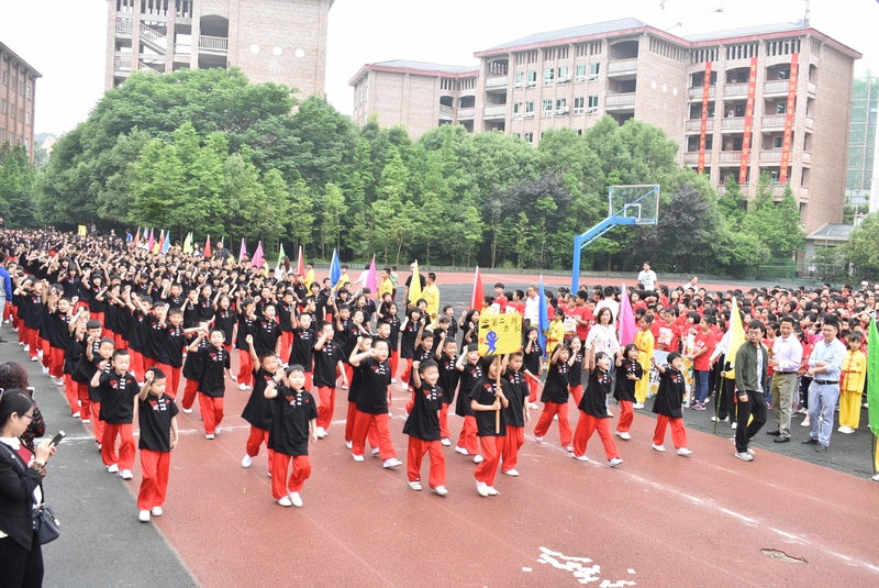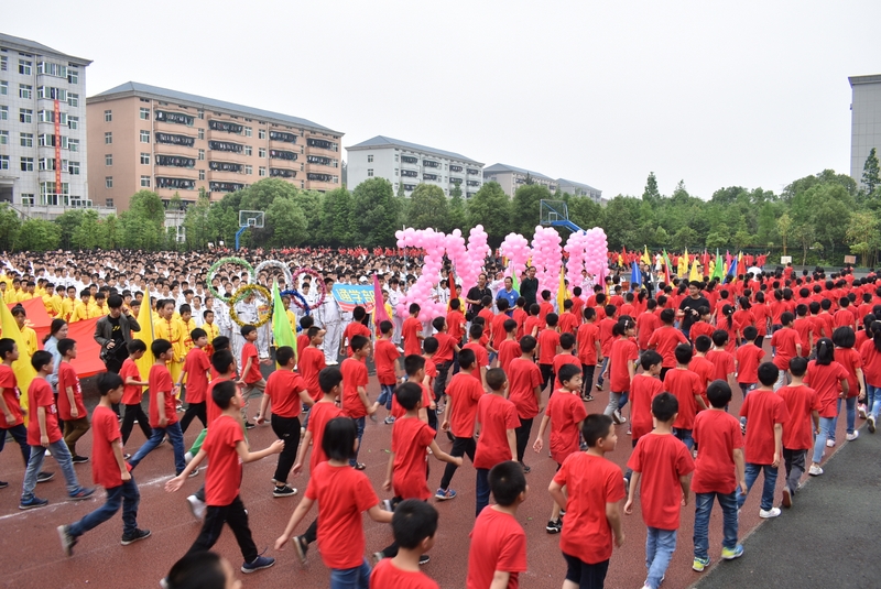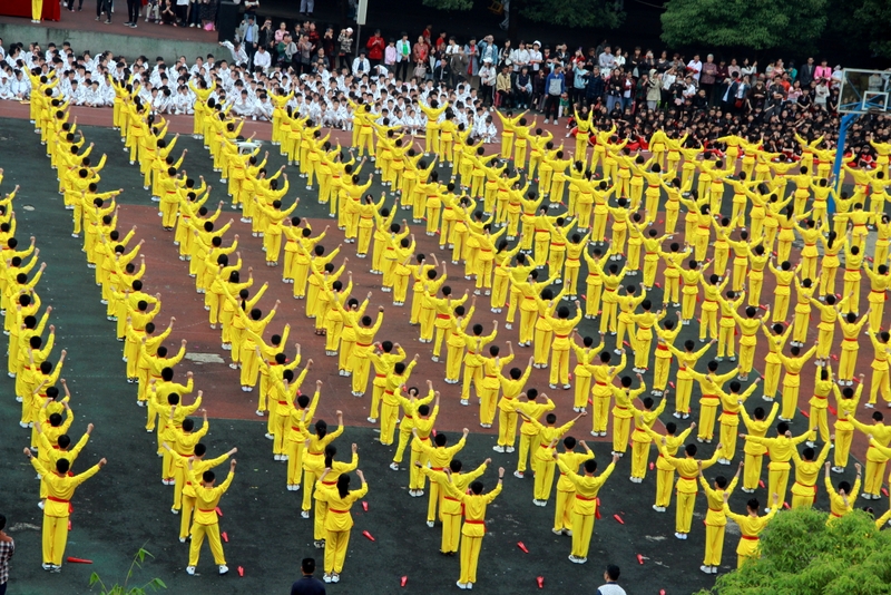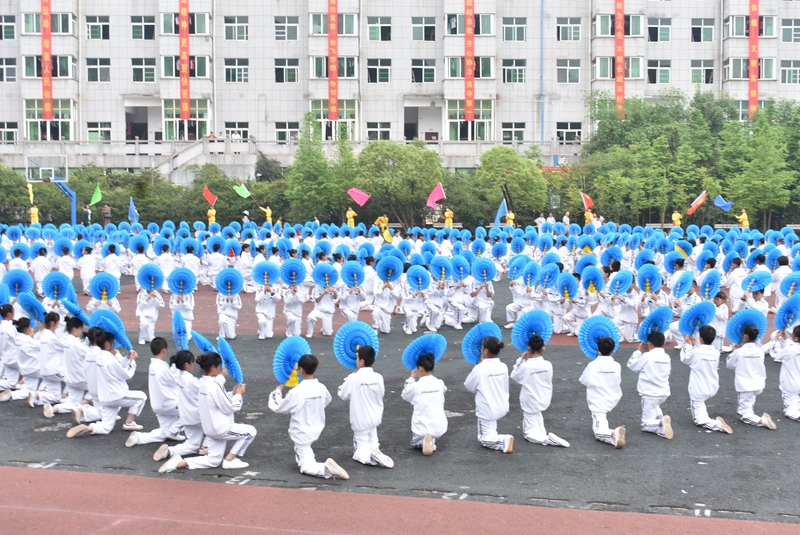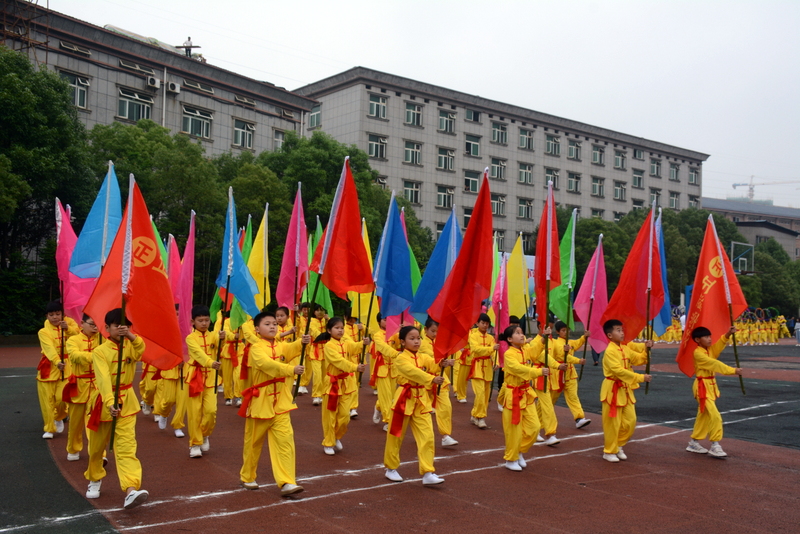 二年级833名同学表演《三字经》动作秀,一边做着各种武术动作,一边背诵“三字经”,文武并举,珠联璧合。