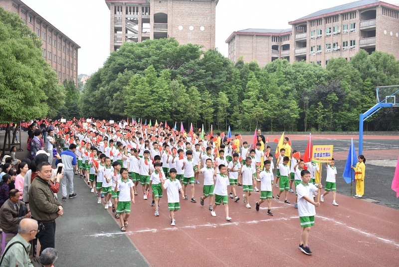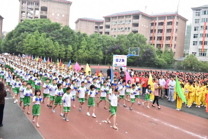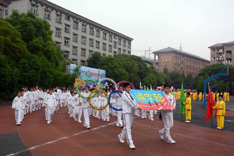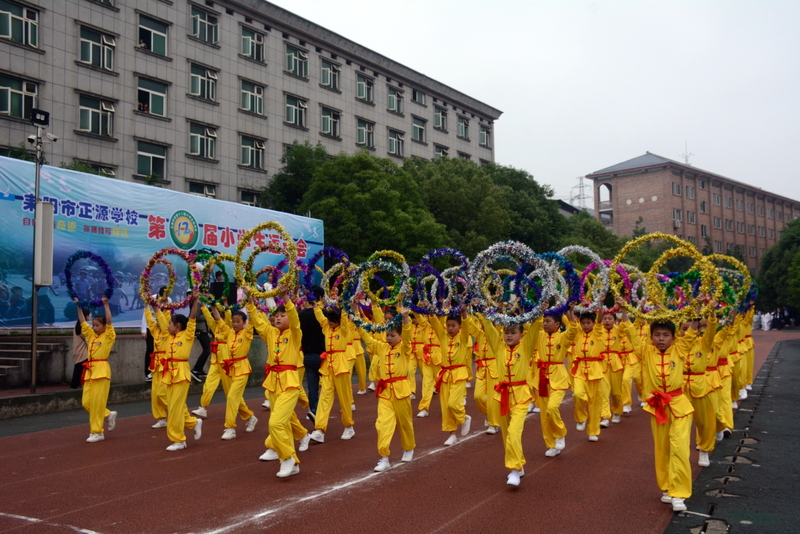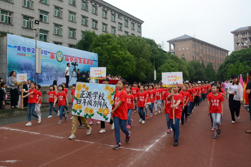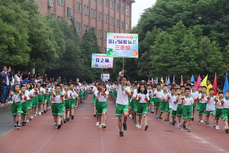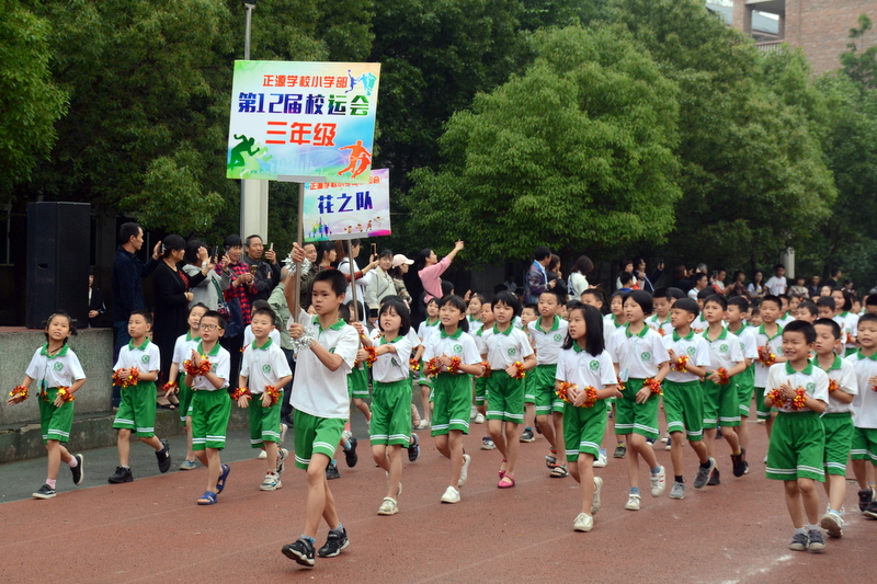 五年级226班同学组成花环队。他们手举花环,五彩缤纷,朝气蓬勃,昂扬向上。在主席台前,他们暂停下来,面向学校领导,摆出五环造型,高喊口号“正源正源,勇往直前;敢打敢拼,敢为人先!”这是青春的音符,恣意地在竞技场上跳动;这是青春的画笔,潇洒地画出胜利的徽章。