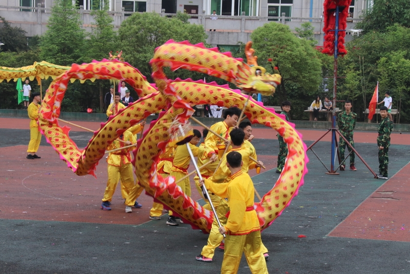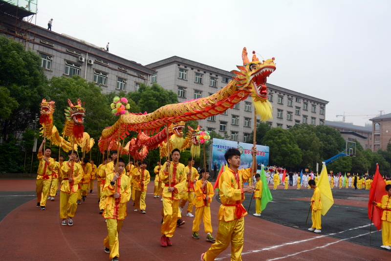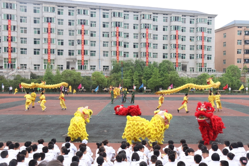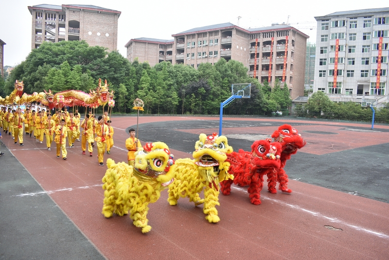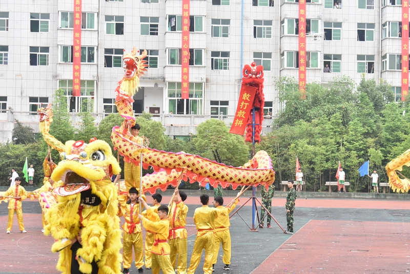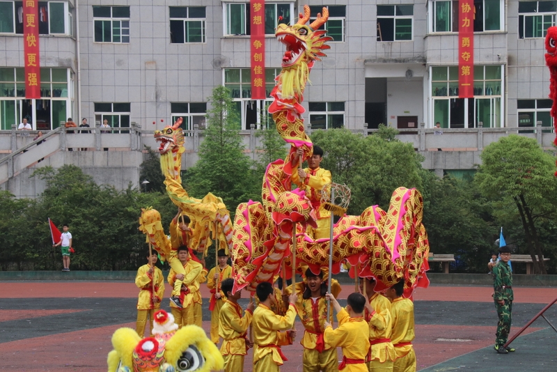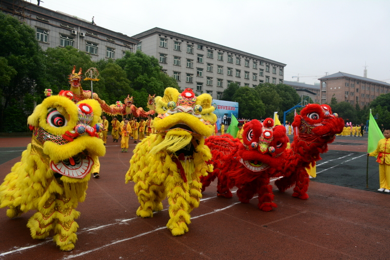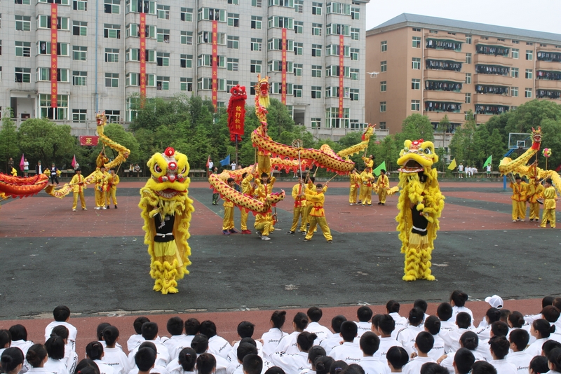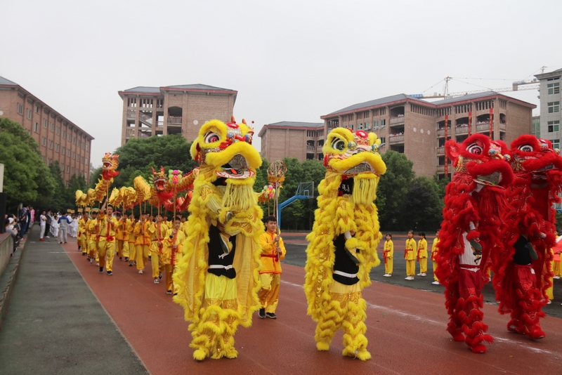 最威风凛凛的莫过于前来助阵的中学生龙狮队。看,四头雄狮、五条巨龙,摇头摆尾,虎虎生风,眨着灵动的眼睛,似乎随时都要腾空飞去。