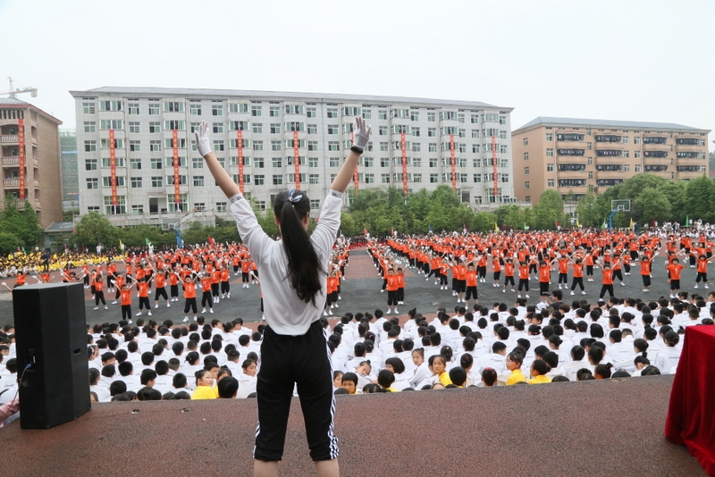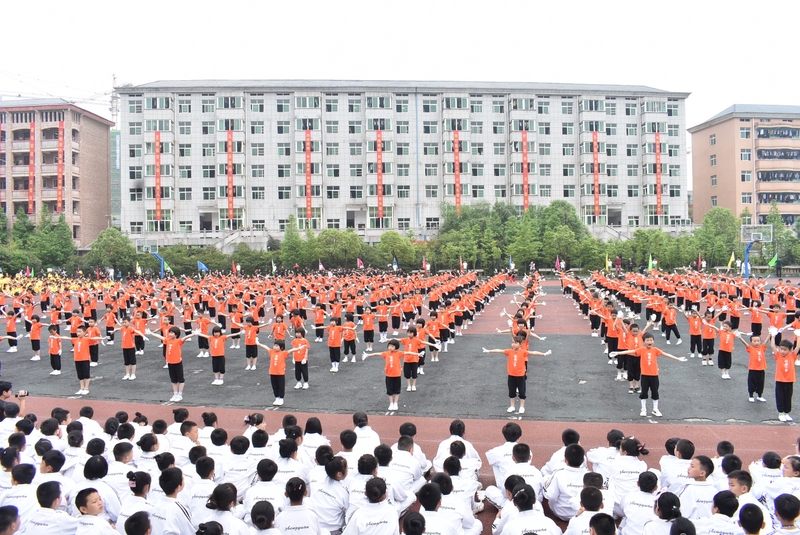 欢快的节奏,催人奋进;跳跃的音符,荡人心弦。童年的火花,在节奏中迸发;奋进的激情,在音符中闪现。这是小学部三年级695名同学为我们带来的表演——兔子舞。