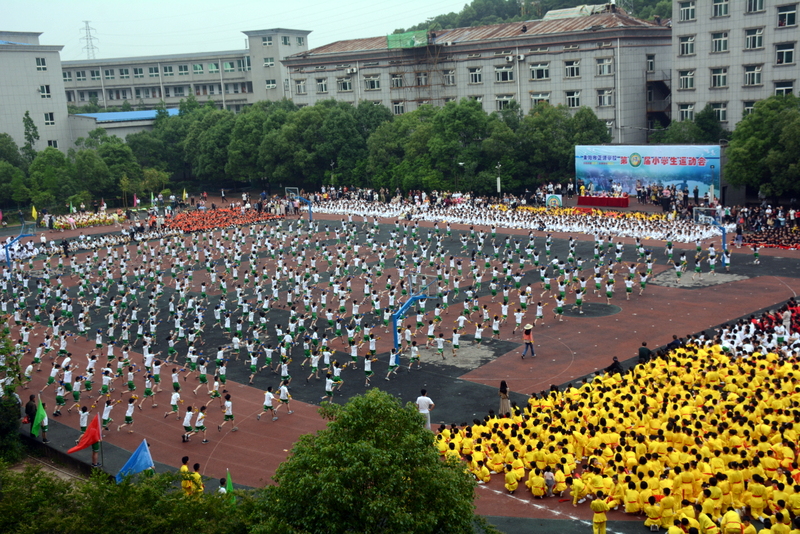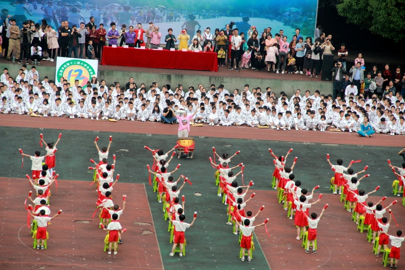 各年级团体表演已经结束,雄壮的音乐声还在空中久久回荡,精彩的表演还在眼前不断闪现,让人不由惊赞: