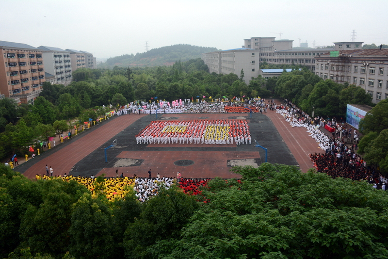 寒风瑟瑟叶飘零,战鼓咚咚战马鸣。万方多难山河碎,堂堂男儿傲群雄。豪情壮志冲霄汉,捐躯为国肯惜身?耿耿忠心图报国,满腔热血写丹青!四年级802名同学表演《精忠报国》武术操和《快乐崇拜》韵律操。