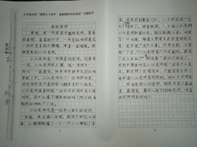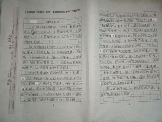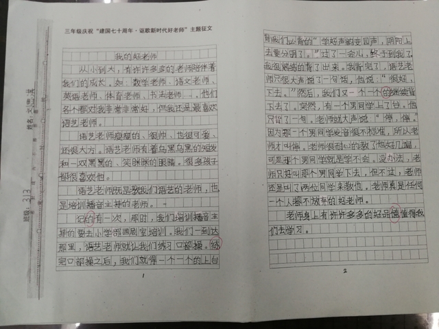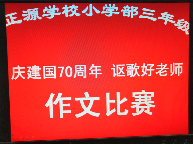 为了弘扬新时代教师风采,挖掘我市优秀教师典型,向建国七十周年献礼,根据《关于印发〈耒阳市中小学校党组织开展“四比四争”和“三亮三比三评”活动方案〉的通知》,正源学校小学部三年级于5月11日举行了“庆祝建国七十周年·讴歌新时代好老师”征文比赛。