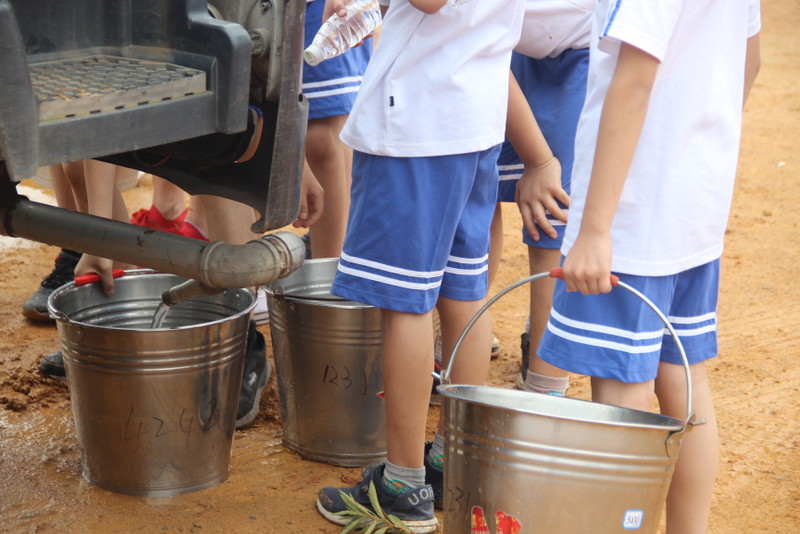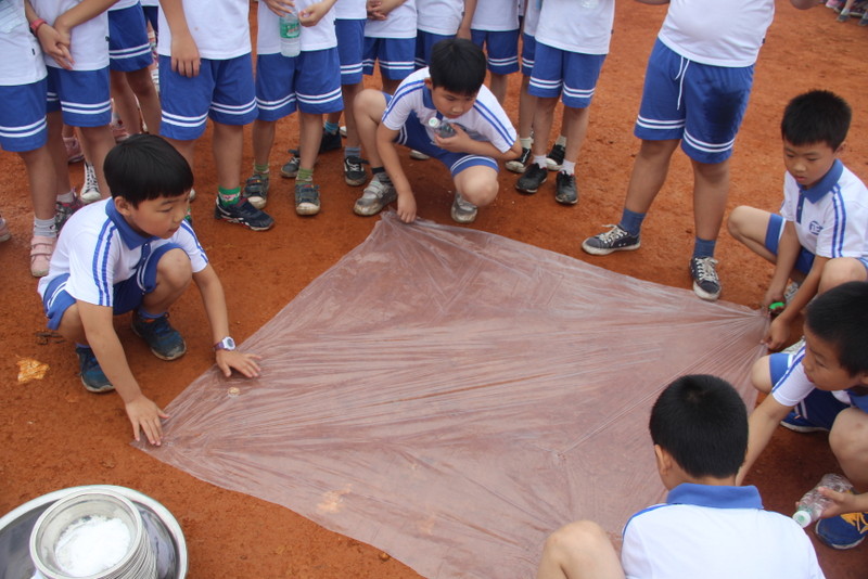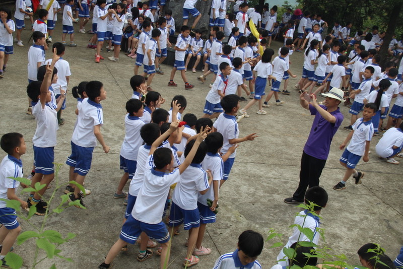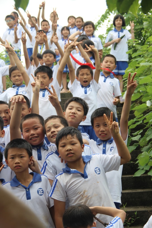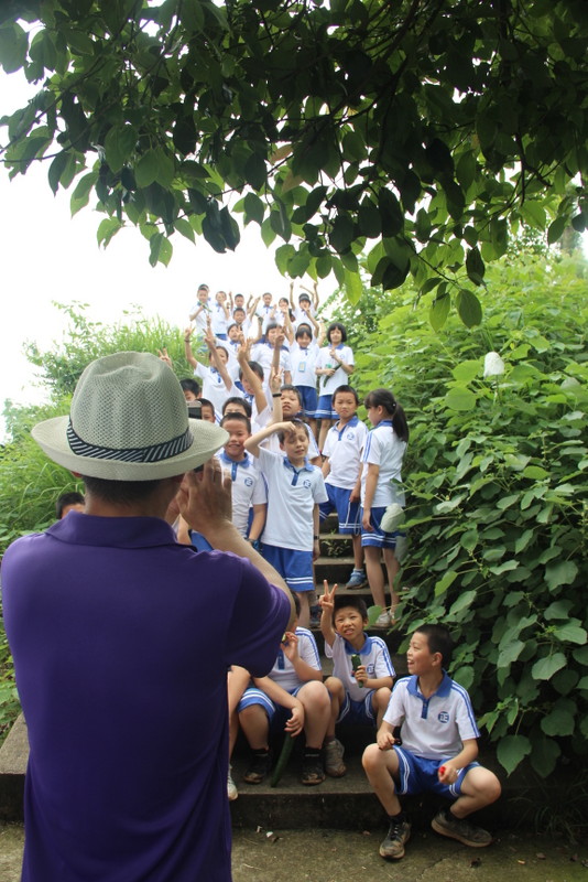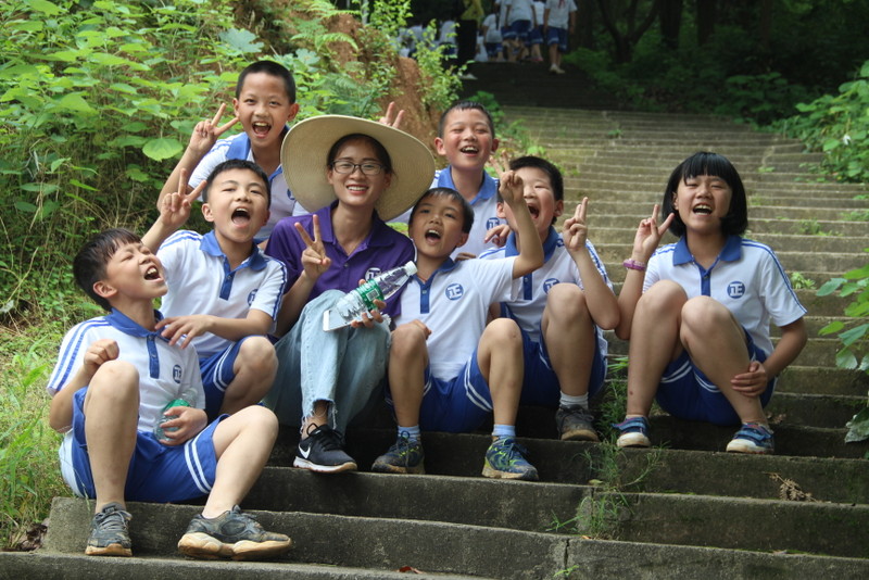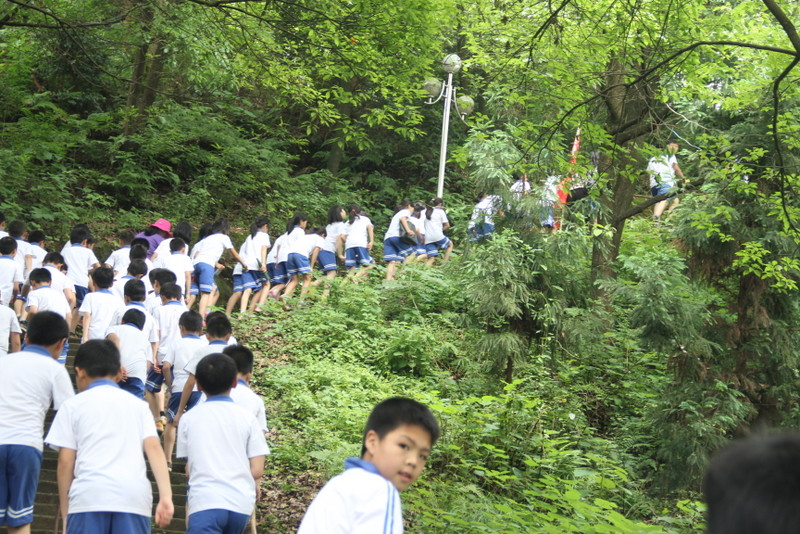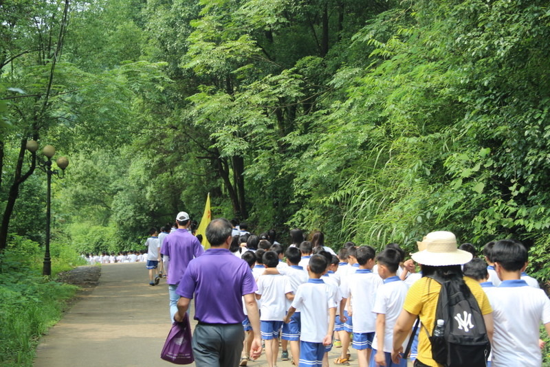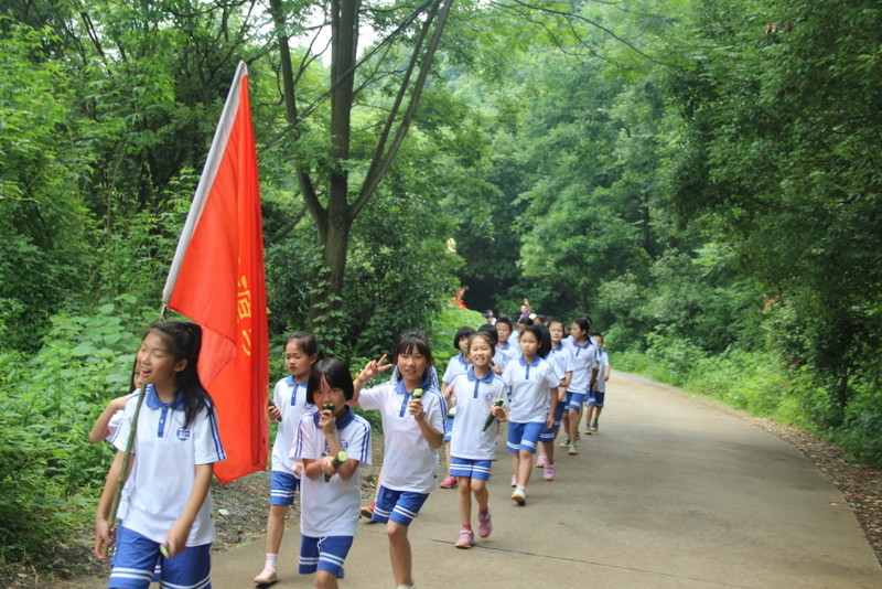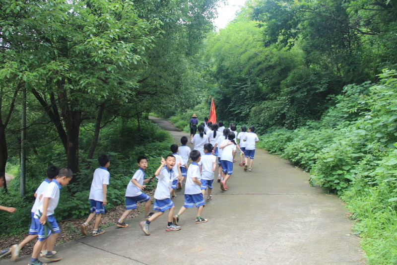 一路奔波,一路欢歌,孩子们虽累却快乐着。天空时不时洒下几点零星雨珠,为远足的孩子们加油助兴。