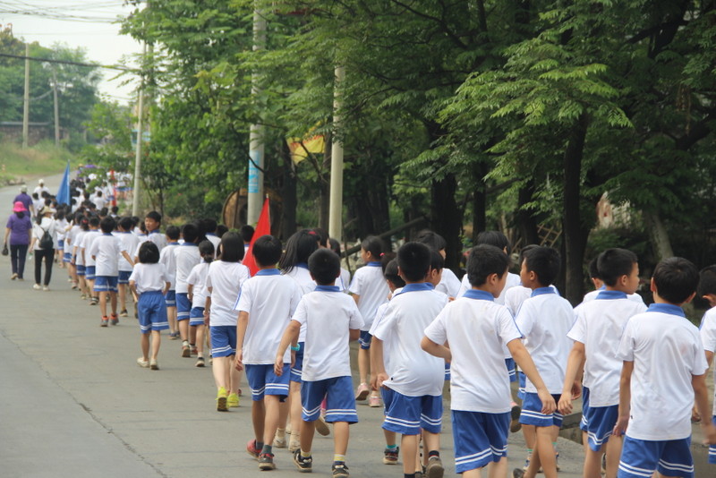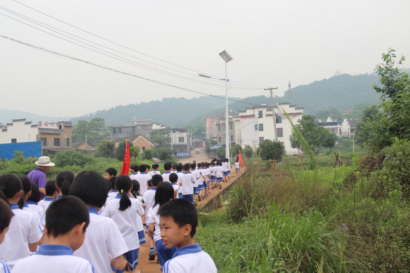 下午2:30,孩子们踏上了返校的旅程,这时的太阳有点辣,同学们顾不上汗流浃背,顾不上口干舌燥,顾不上脚痛腿痛,兴致勃勃往回赶。极个别孩子明显体力不支,在同学的搀扶下一步一个脚印,艰难地跨出每一步,抱着绝不当“逃兵”的坚定信念,始终坚持着。
