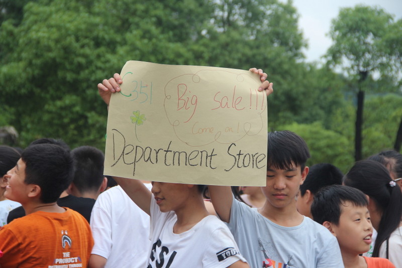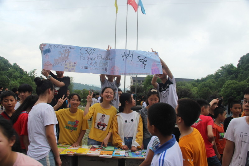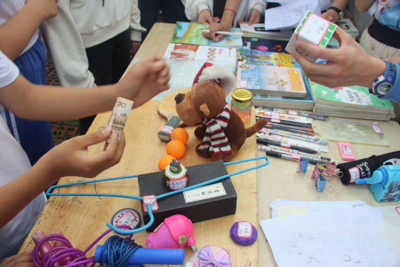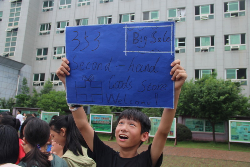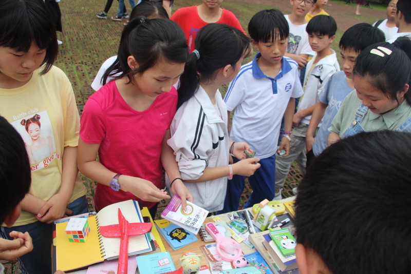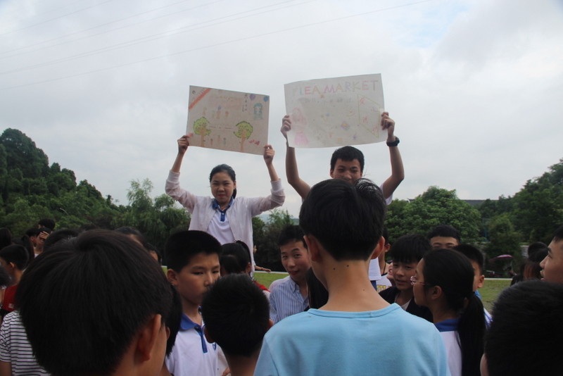 下午第八节课,跳蚤市场正式开始“营业”。操场上已经人头攒动,卖东西的吆喝声,买卖双方的讨价还价声,此起彼伏,热闹极了,都是一口流利的英语,如果不是一个个黑头发、黄皮肤,还以为是到了西方市场呢。