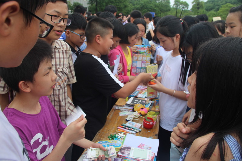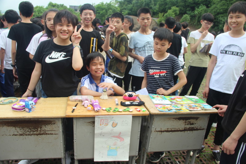 为丰富初一学生艺术文化生活,激发学生学习英语兴趣,发扬勤俭节约的传统美德,充分发挥闲置物品的利用价值,5月27日下午,初一年级在学校广场举办了跳蚤市场活动。