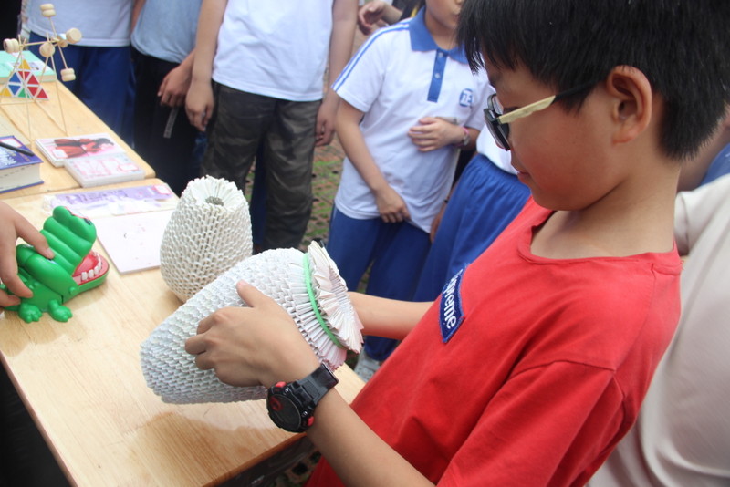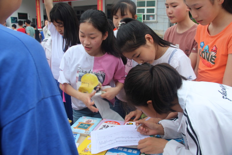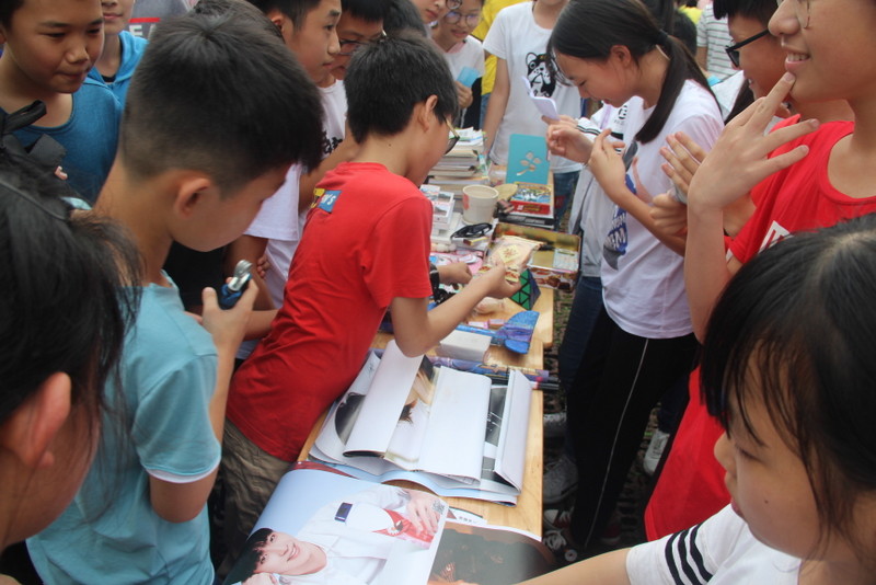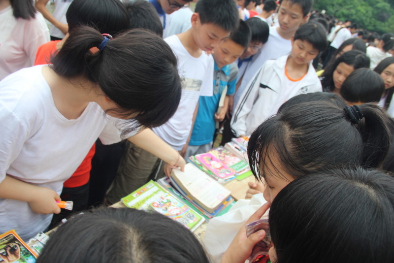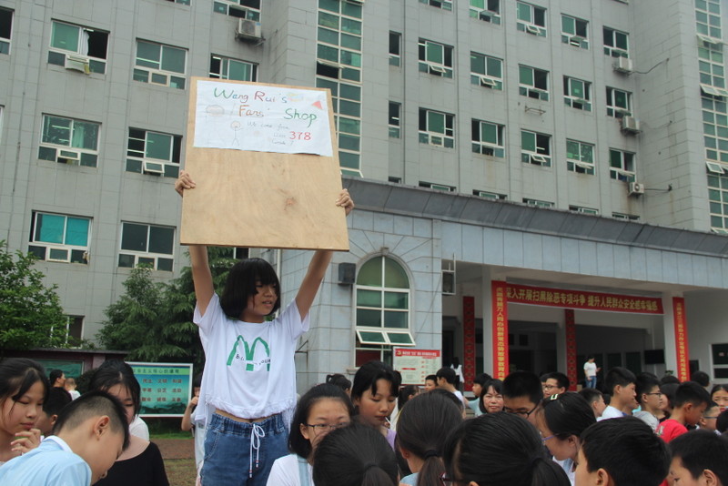 为了吸引更多的“客人”光顾,各班“售货员”们使出了浑身解数:有的学生一边挥舞着自制的宣传牌,一边用英语大声吆喝叫卖着:“走过路过千万不要错过”“大甩货,最低只要1元”;有的还站到了椅了上热情叫卖;有的摊位使出了买一赠一的促销手段;还有的买书抽奖,他们的全身心投入,让“跳蚤市场”的气氛更活跃,成为校园里一道亮丽的风景。给力的推销手段不仅吸引了学生,连到场参加活动的家长教师也都停下了脚步在各个摊位前驻足挑选。