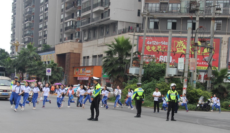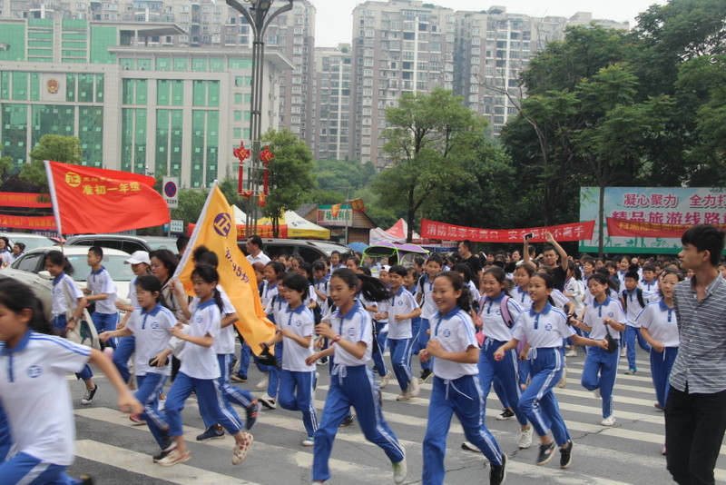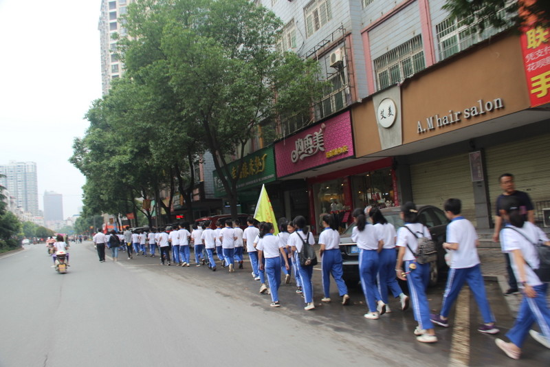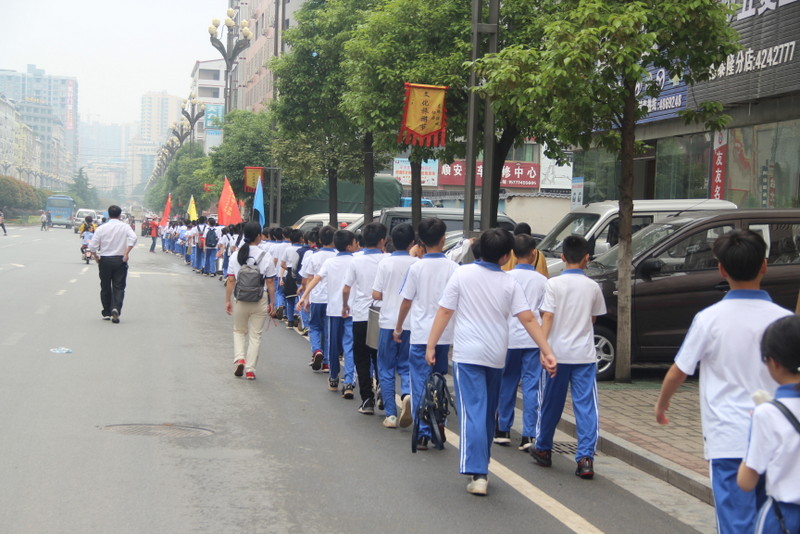 沿途,每一个路口都有学校领导、保安、老师,还有辛勤的交警在尽职尽责地为孩子们保驾护航。同学们意气风发的精神面貌,团结互助、听从指挥的态度受到了沿途百姓的啧啧赞叹。