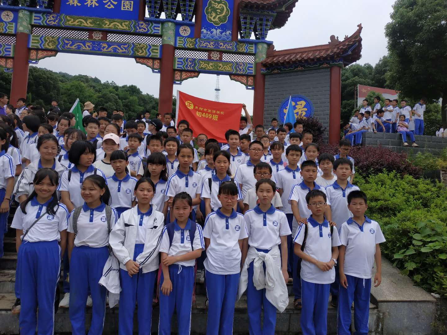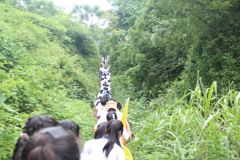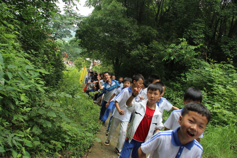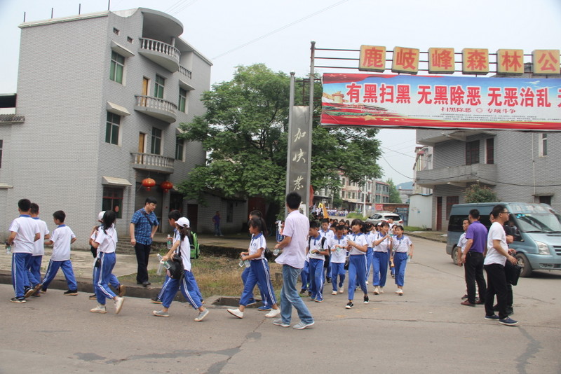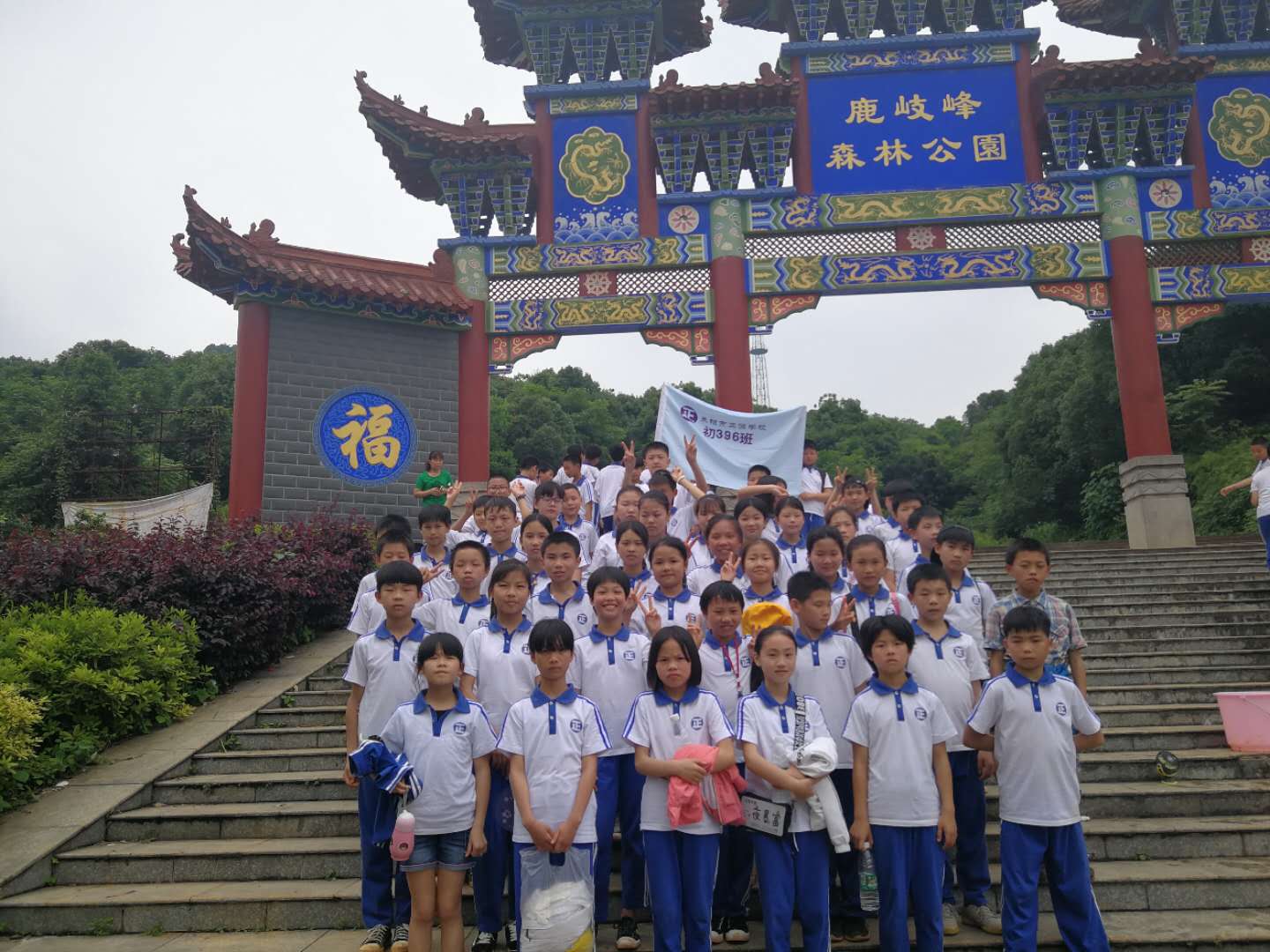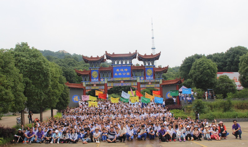 12:30,吃过午饭后,各班陆续向鹿岐峰行进。在鹿岐峰森林公园牌坊下,各班表演了各种节目,然后,全年级师生合影。