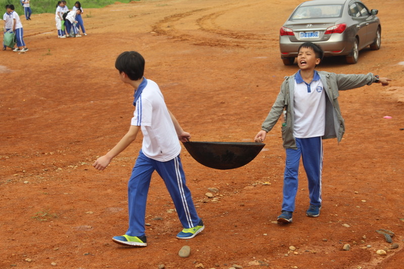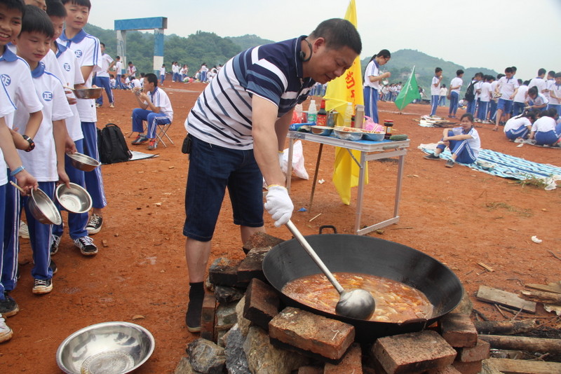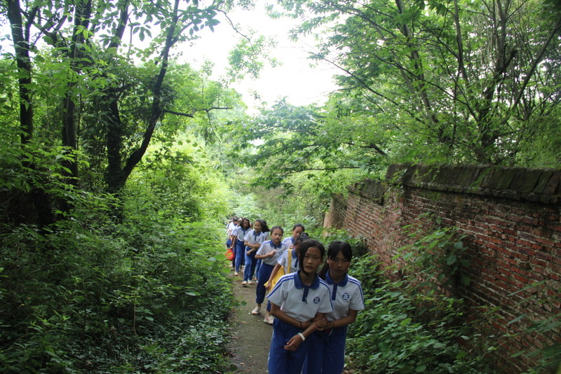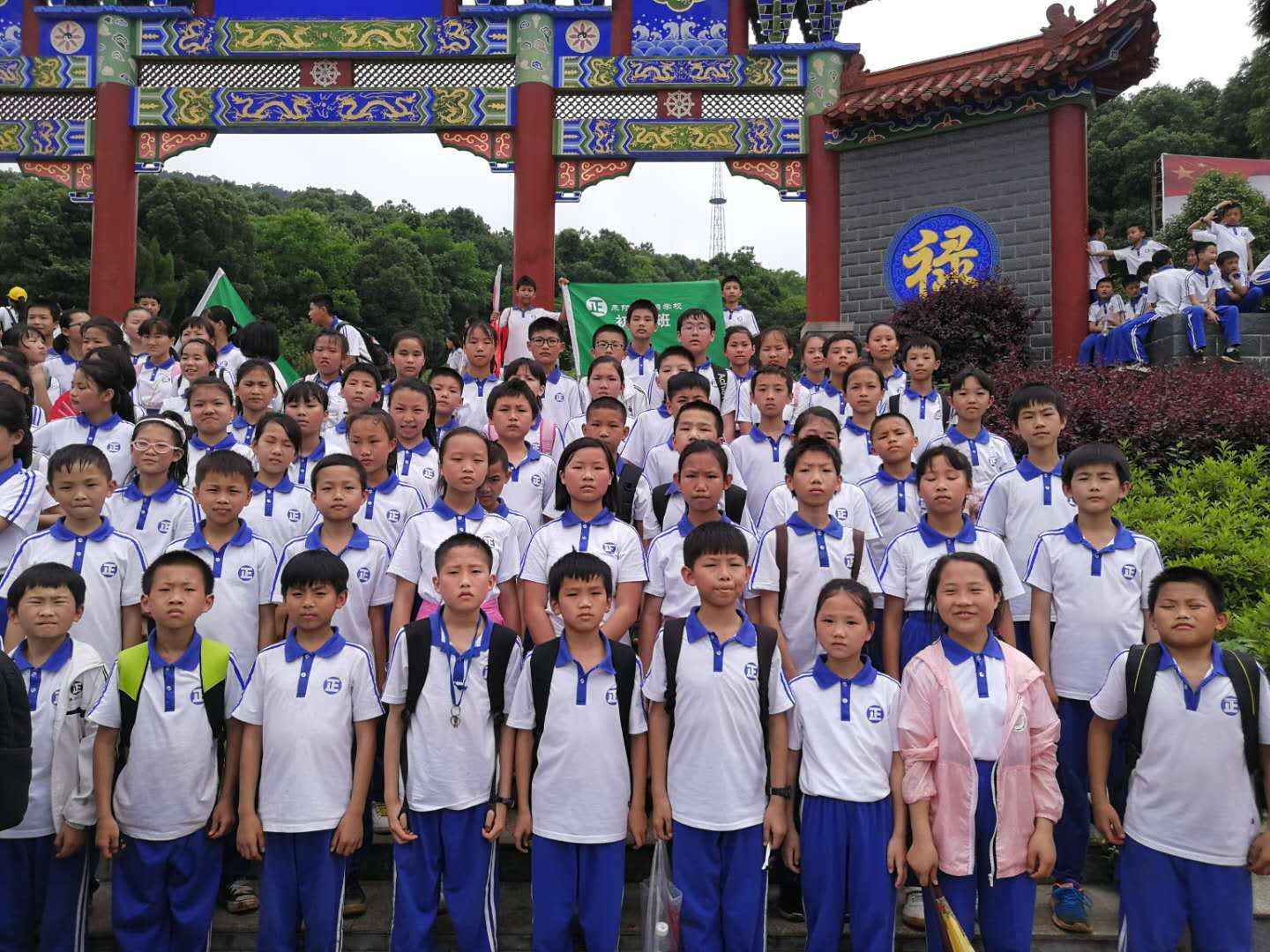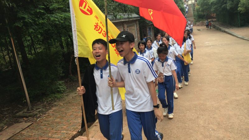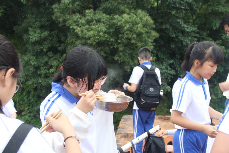 12:30,吃过午饭后,各班陆续向鹿岐峰行进。在鹿岐峰森林公园牌坊下,各班表演了各种节目,然后,全年级师生合影。