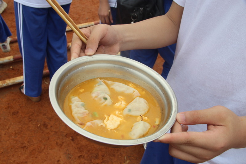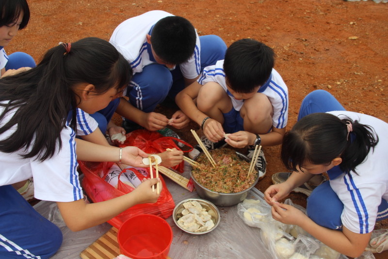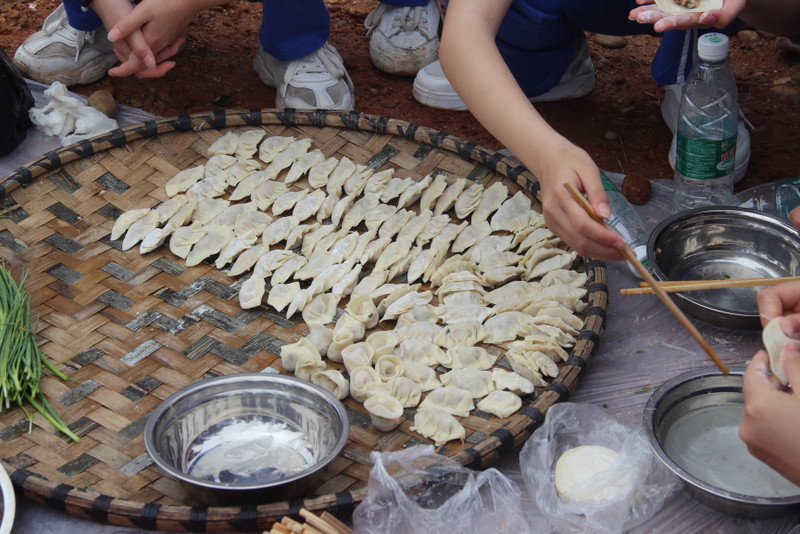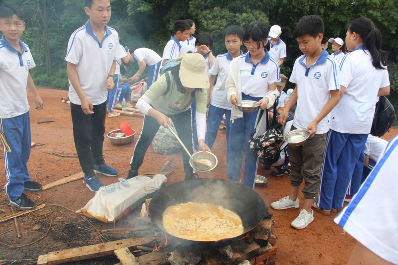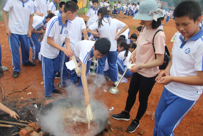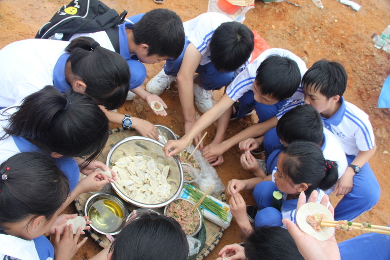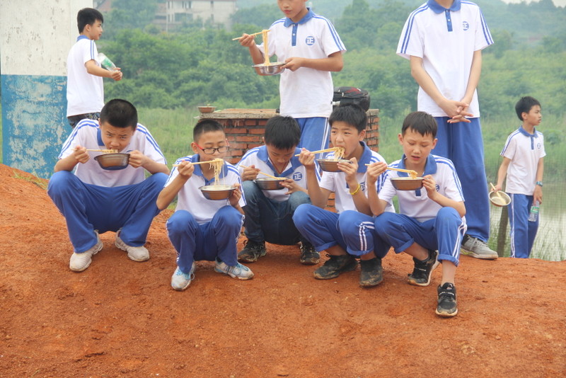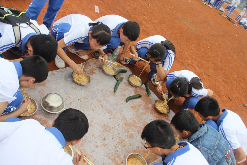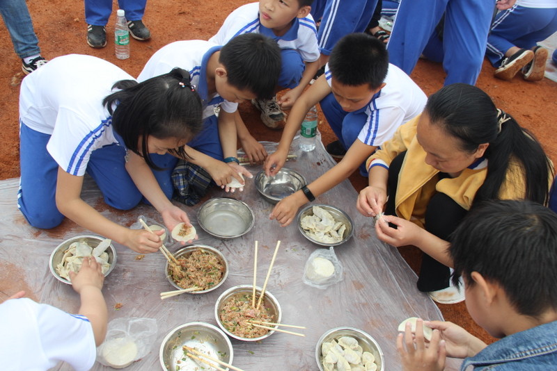 11点不到,各个班先后到达了野炊地点,同学们按部就班、各司其职。搭灶台、取柴火、领食材、打水、洗具、包饺子、烧火等,都在有条不紊地进行。同学们不怕脏、不怕累,争先恐后地做各种事。很快,有的班先煮出了饺子,有的班先下好面条。“老师,来吃我们包的饺子,可好吃啦!”“老师,来尝尝我们煮的面条,好香的!”……野炊点飘起了一阵阵食物的清香,传出了一句句暖心的话语,荡漾着一阵阵的欢笑。孩子们都津津有味地吃着自己动手做的美食,老师们脸上洋溢着幸福的笑容,“别急,慢慢吃,小心烫,等会还有下一锅……”一个多小时后,大多数班级都煮了三四锅面条和饺子。