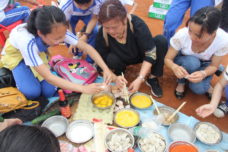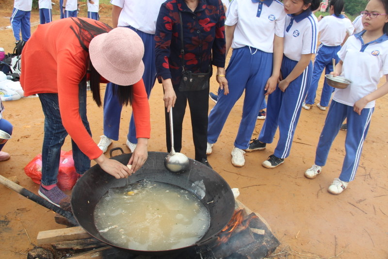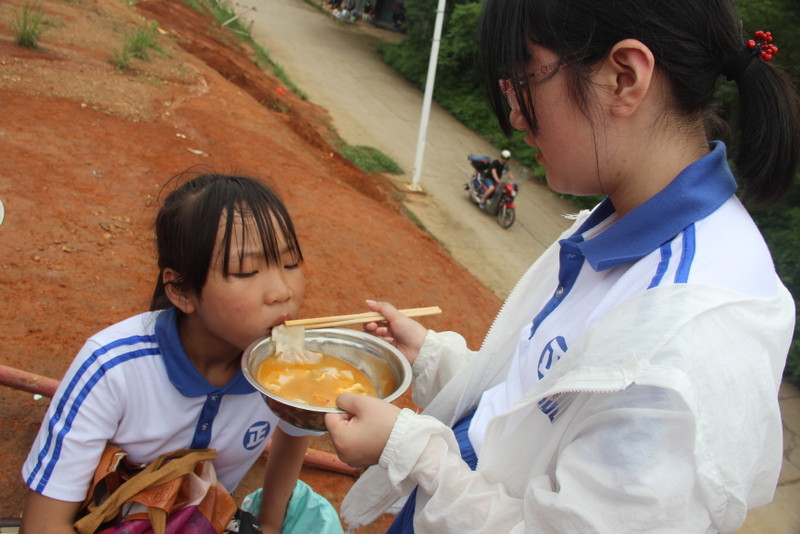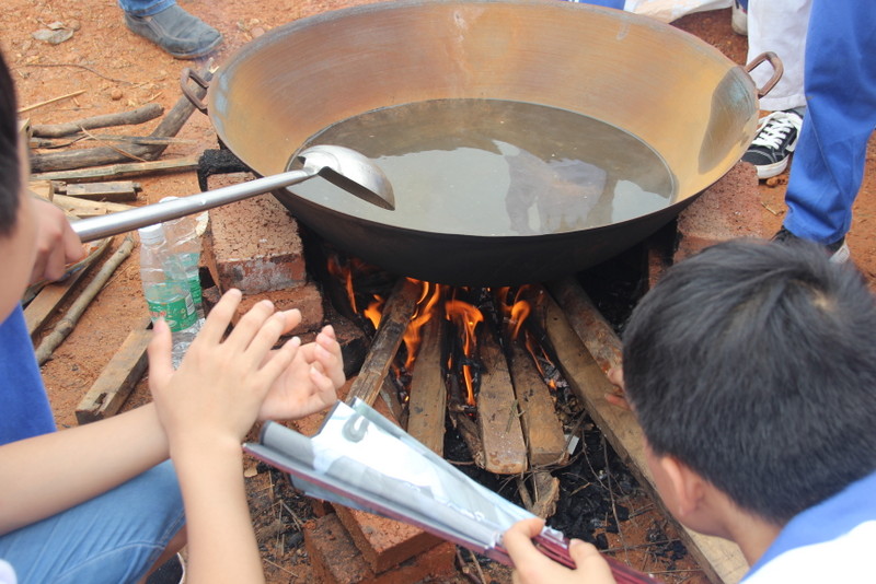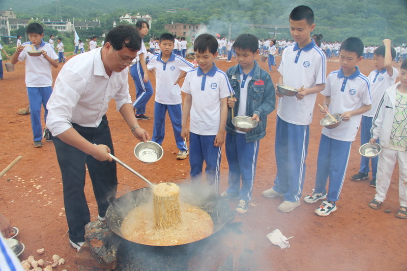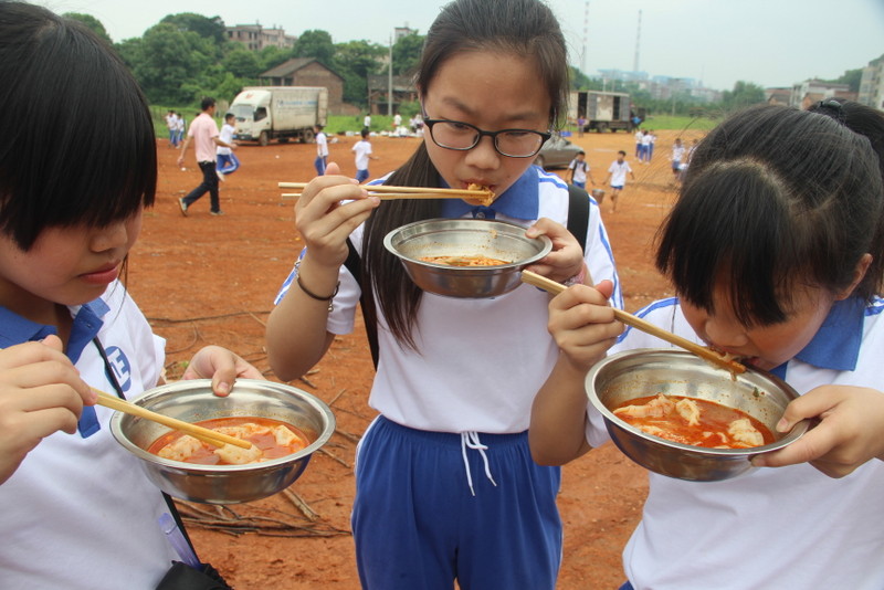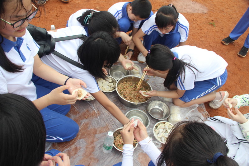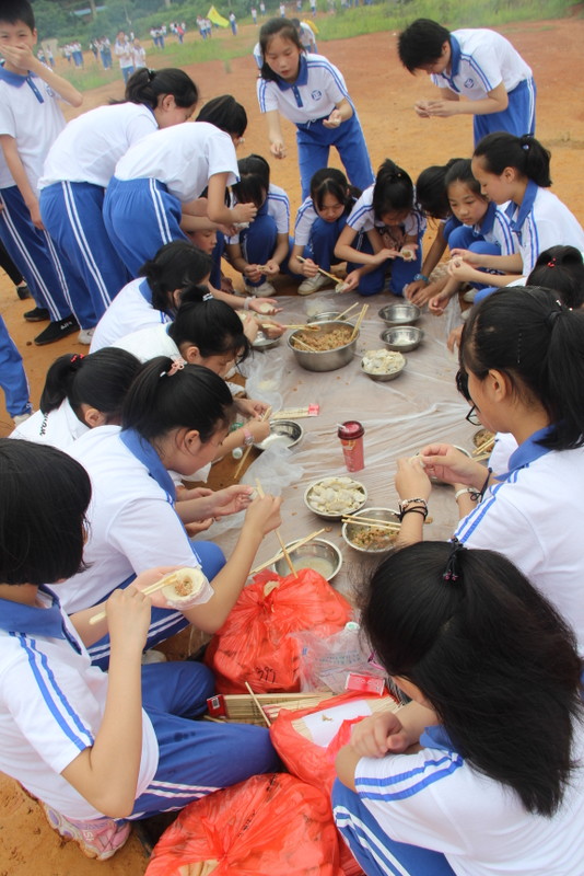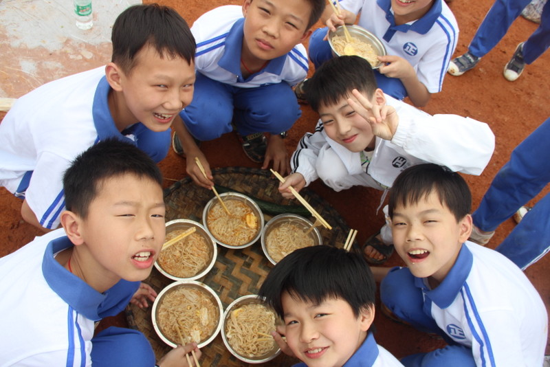 11点不到,各个班先后到达了野炊地点,同学们按部就班、各司其职。搭灶台、取柴火、领食材、打水、洗具、包饺子、烧火等,都在有条不紊地进行。同学们不怕脏、不怕累,争先恐后地做各种事。很快,有的班先煮出了饺子,有的班先下好面条。“老师,来吃我们包的饺子,可好吃啦!”“老师,来尝尝我们煮的面条,好香的!”……野炊点飘起了一阵阵食物的清香,传出了一句句暖心的话语,荡漾着一阵阵的欢笑。孩子们都津津有味地吃着自己动手做的美食,老师们脸上洋溢着幸福的笑容,“别急,慢慢吃,小心烫,等会还有下一锅……”一个多小时后,大多数班级都煮了三四锅面条和饺子。