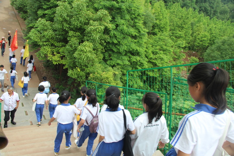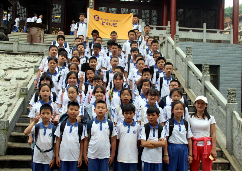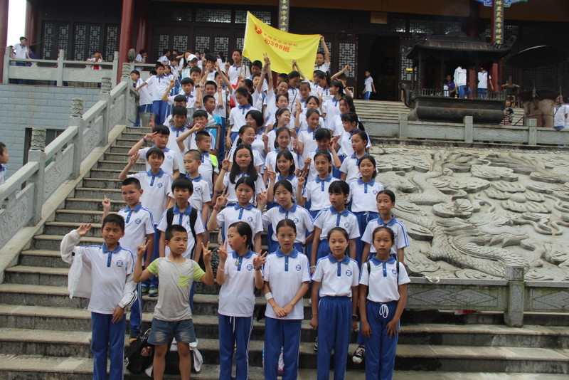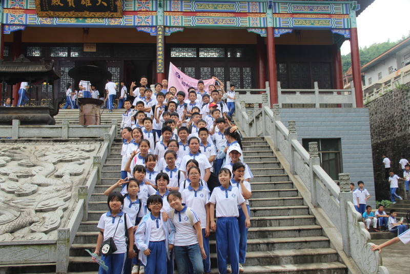 下午1:40,我们来到雄伟的鹿峰寺,准初一21个班级分别在大雄宝殿前合影,然后各班自由活动。同学们参观金碧辉煌的大殿,品尝八卦井的泉水,了解十殿阎王的传说,观瞻鹿岐峰碑壁上的诗文和书法,眺望耒阳城全貌……