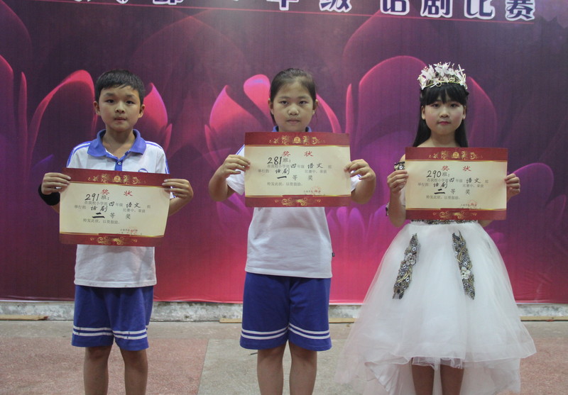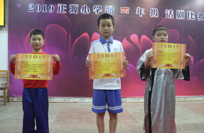 比赛结果现场揭晓,并根据观众赛场表现,评选出三个文明班级。学部教务主任刘溅生老师和年级主任刘龙军老师为获奖班级颁奖,四年级话剧表演大赛圆满结束!
