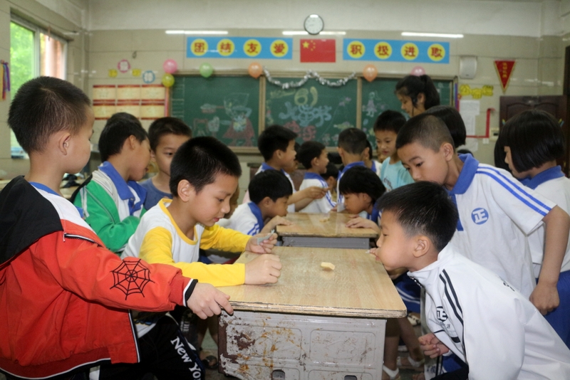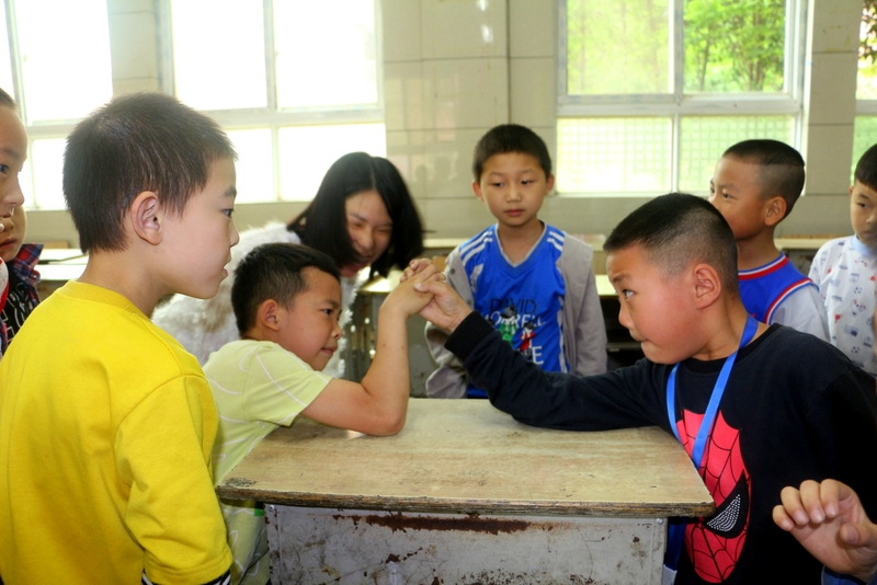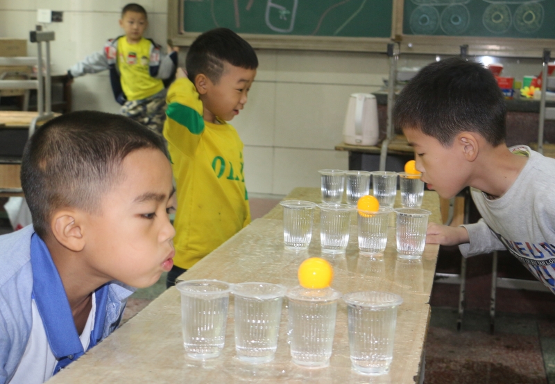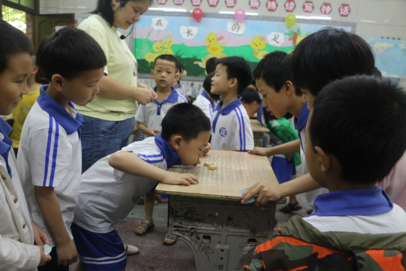 游完二楼品一楼。看到楼上的游戏如此精彩,更激起了到一楼游乐的兴趣。踏进350班的大门,就听到一个孩子兴高采烈地说:“老师,我吹过去了,我吹过去了,可以获得奖票了!”近前一看,原来是在吹橡皮擦,只见一位同学鼓起腮帮子,铆足了劲,奋力张嘴一吹,一块橡皮擦就从桌子的一边移动到了另一边。橡皮一过,奖票到手,玩起来特有成就感。因此,这个游戏区异常火爆。351班是抢椅子,教室中间四张椅子紧挨着放,段琪,贺思蒙等五名同学围着椅子随着音乐转圈,音乐一停就抢座椅子,段琪稍有分神,未能抢到椅子,一屁股坐在一个女生的大腿上,那个女生急忙推开他,就这样第一个淘汰出局。音乐忽起忽停,椅子越转越少,最后贺思蒙手持奖券,满载而归。一组完成,一组又起,奖票不完,转圈不息。最后进入的教室是352班,这个教室在掰手腕。一批又一批的大力士走上比力气的大擂台,最终358班的同学们夺去了一年级“力王”的称号。