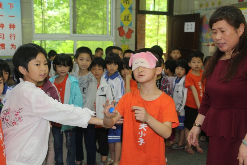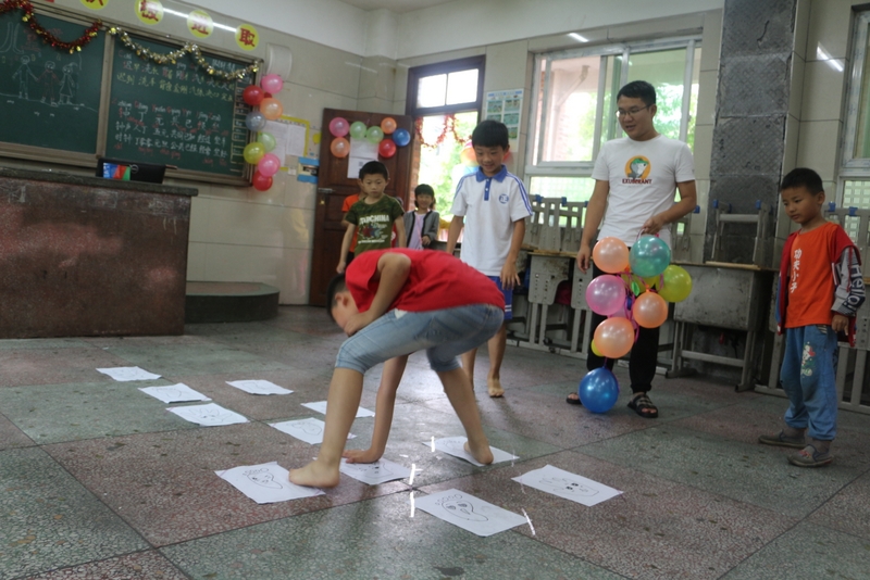 本次游艺活动,一年级共有9个班,分为九个游戏区域和项目,分别是:350班吹橡皮,351班抢椅子,352班掰手腕,353班贴鼻子,354班吹乒乓球,355班夹运乒乓球,356班保龄球,357班“手印脚印,心心相印”,358班夹破气球。每个班主任负责一个游戏。为了让学生安全有序地进行活动,每个楼层都安排了巡视的老师值班,且规定本年级的学生只能在本年级的9个游戏区域进行游戏,在游戏中如能顺利过关就能获取奖票,积累一定的奖票就能到兑奖处换取奖品。
