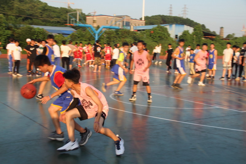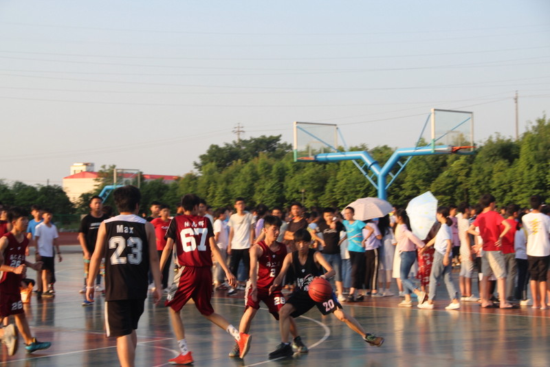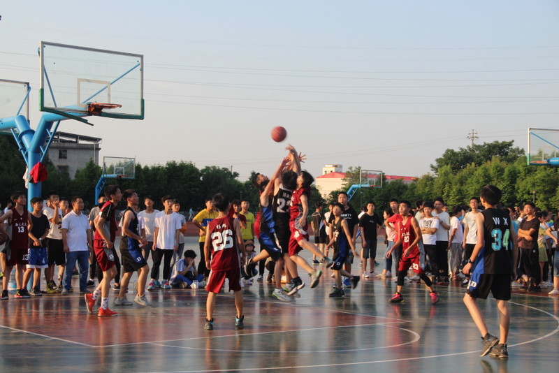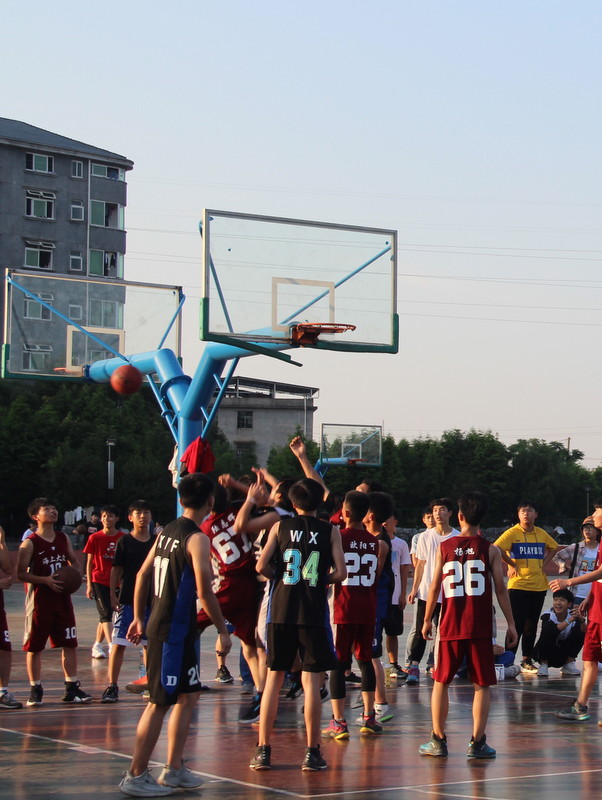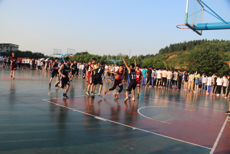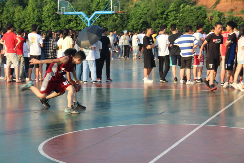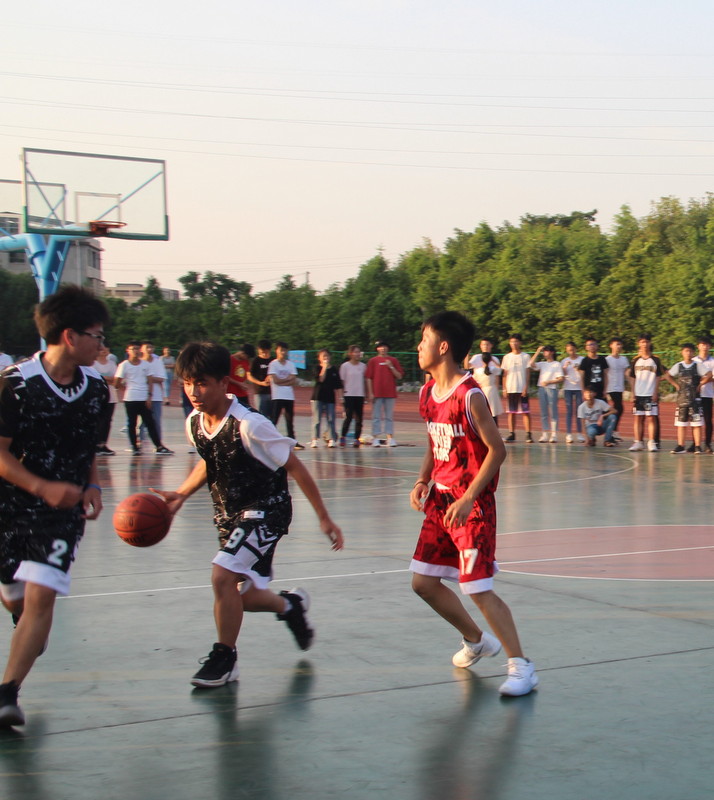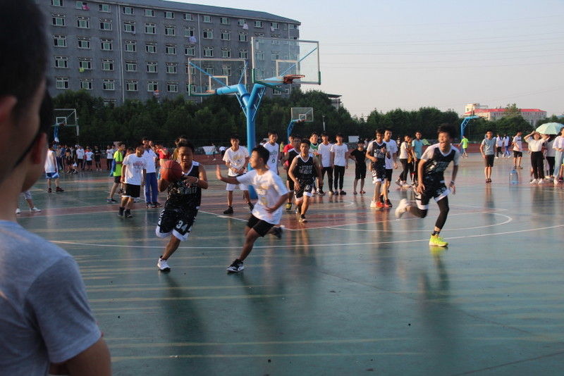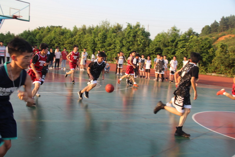 连续的几天暴雨后,6月4日,骄阳似火,虽然临近下午六点了,太阳却迟迟不肯下山。但同学们的比赛热情丝毫不减,中学部运动场上早早就站满了各班加油的啦啦队,各班参赛队员穿着崭新的球服,精神抖擞,早早就在篮球场上做赛前准备了。随着裁判的一声哨响,高一男子篮球比赛就此正式拉开了序幕。