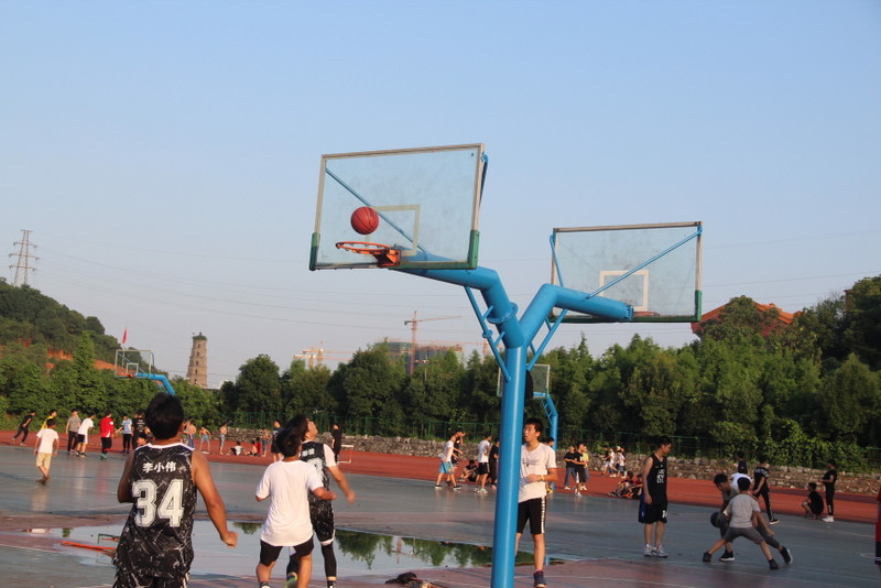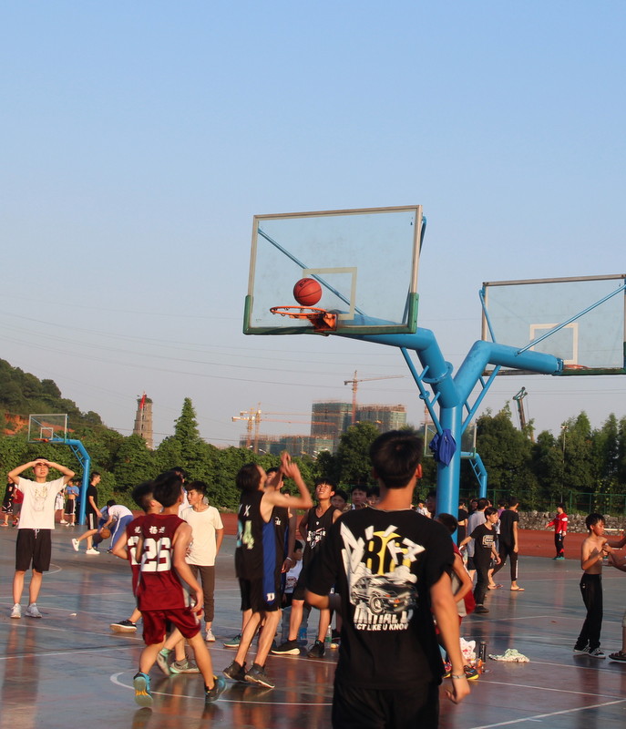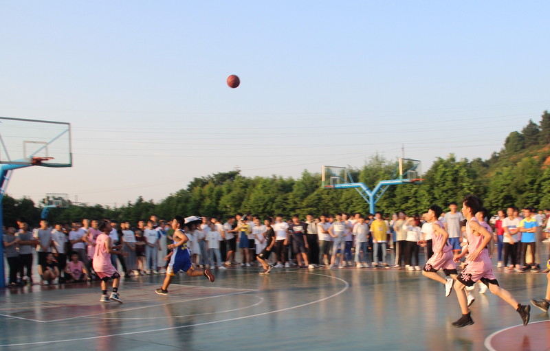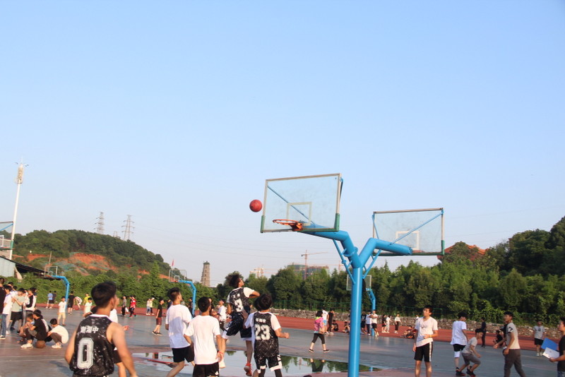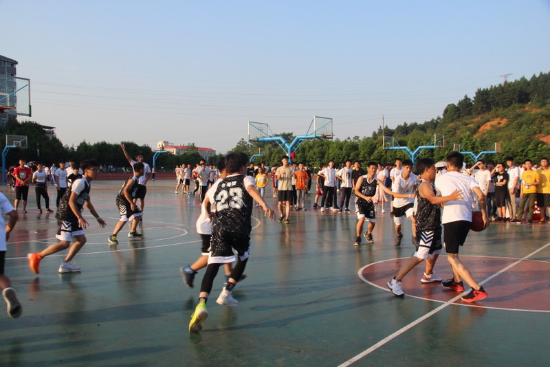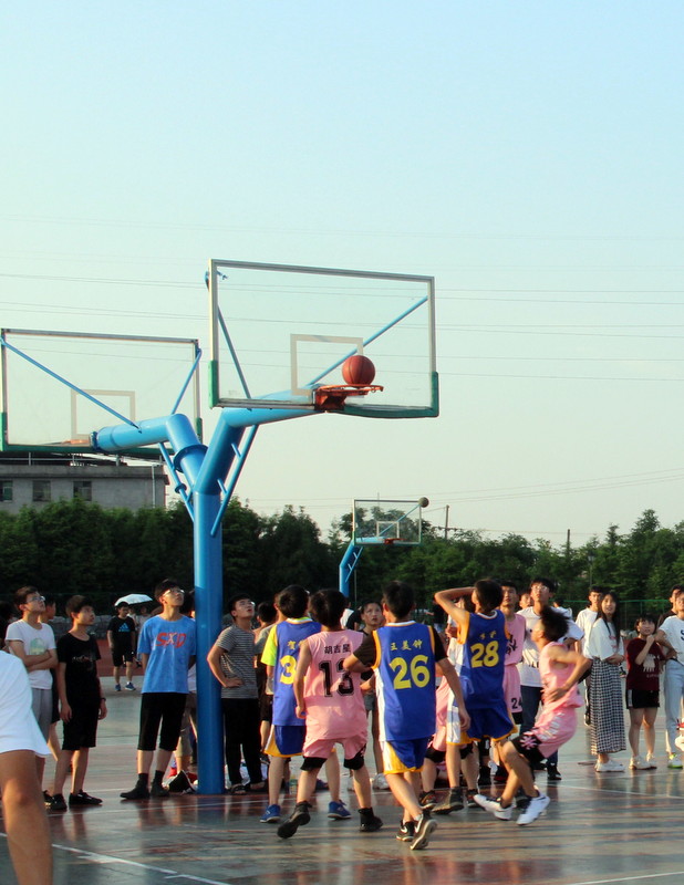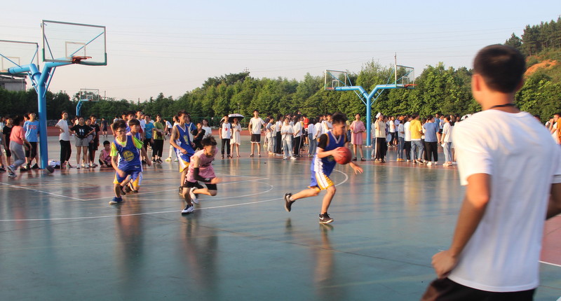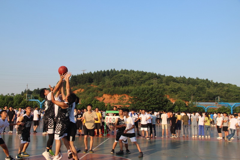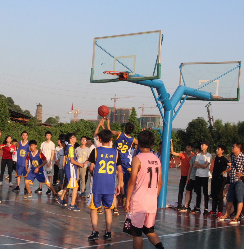 连续的几天暴雨后,6月4日,骄阳似火,虽然临近下午六点了,太阳却迟迟不肯下山。但同学们的比赛热情丝毫不减,中学部运动场上早早就站满了各班加油的啦啦队,各班参赛队员穿着崭新的球服,精神抖擞,早早就在篮球场上做赛前准备了。随着裁判的一声哨响,高一男子篮球比赛就此正式拉开了序幕。