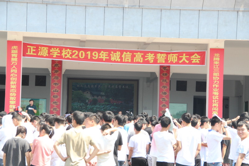 罗校长强调,今天的大会主题是诚信高考,正源,那是正之源,诚信,不容质疑。同学们,任何一个同学都不能给正源丟脸。正源前面已经考了十三届了,还没有出现给正源丟脸的同学。同学们,不容易啊!诚信做人之本,责任重于泰山。
