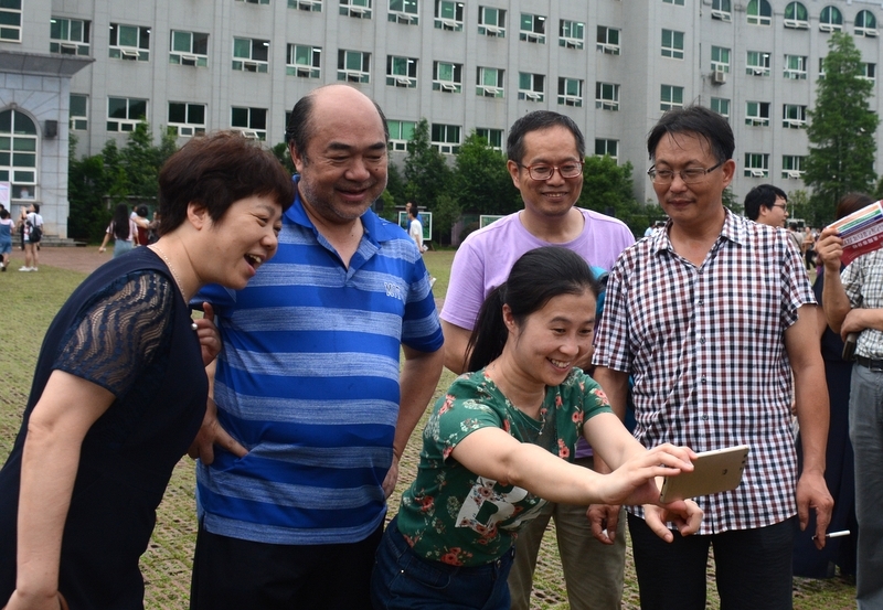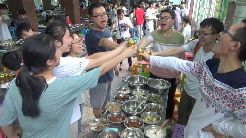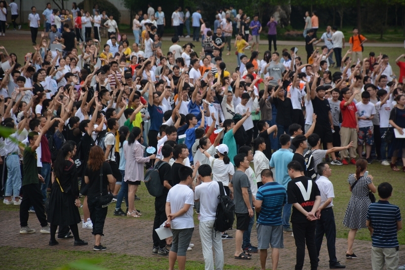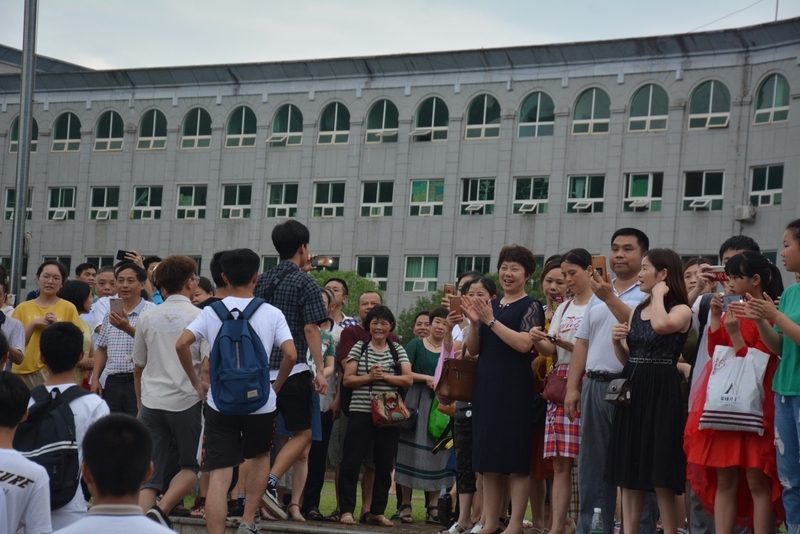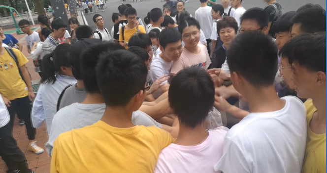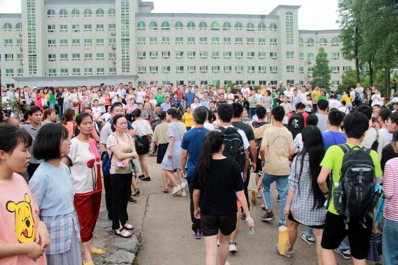 为了营造月考一样的氛围,学校要求高考前半个月,家长不准来校看望孩子。两天考试期间,也极少有家长来学校“骚扰”。最后一场英语考试结束前,部分按捺不住的家长早早来到学校,正源成了欢乐的海洋。