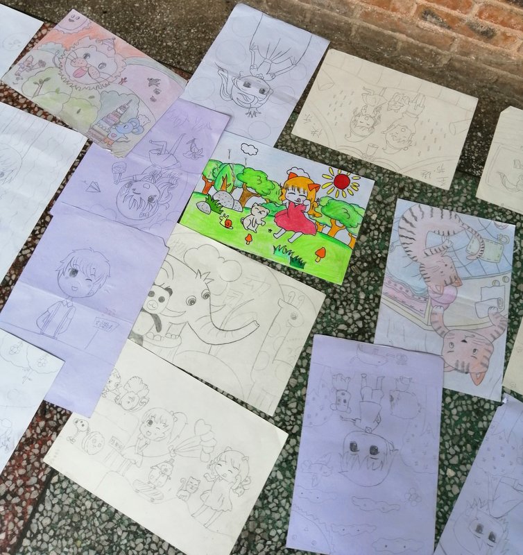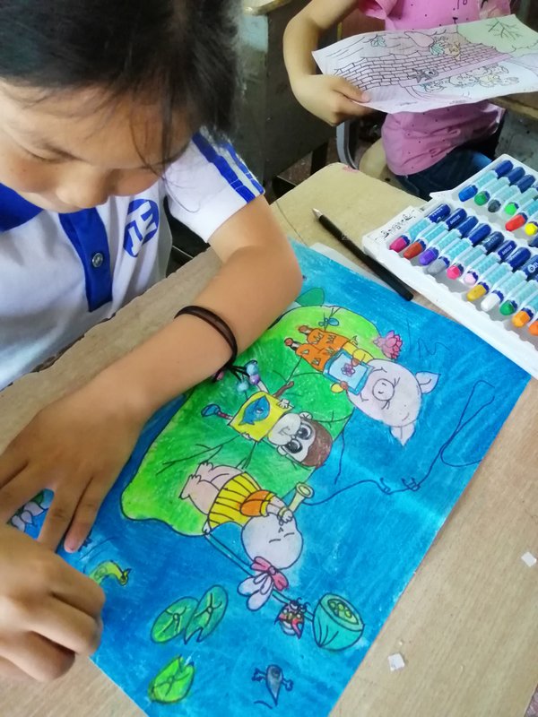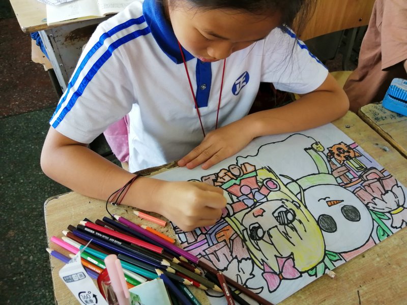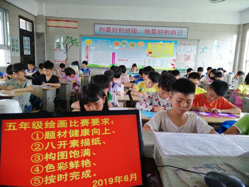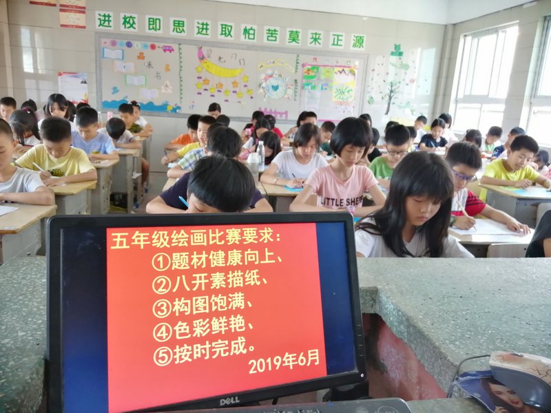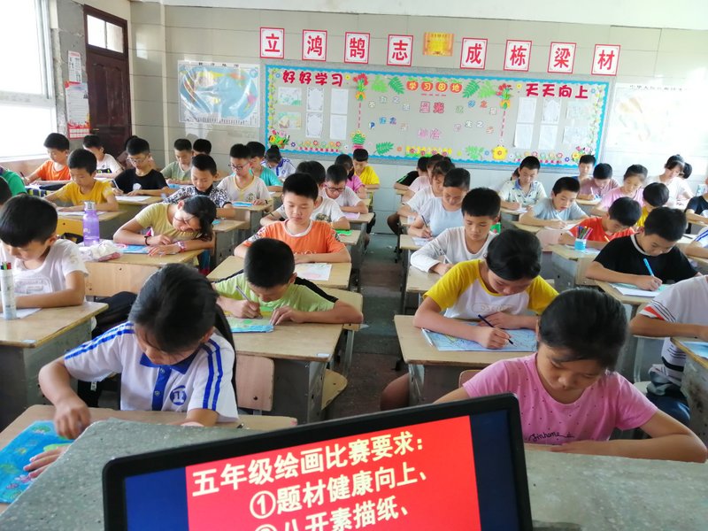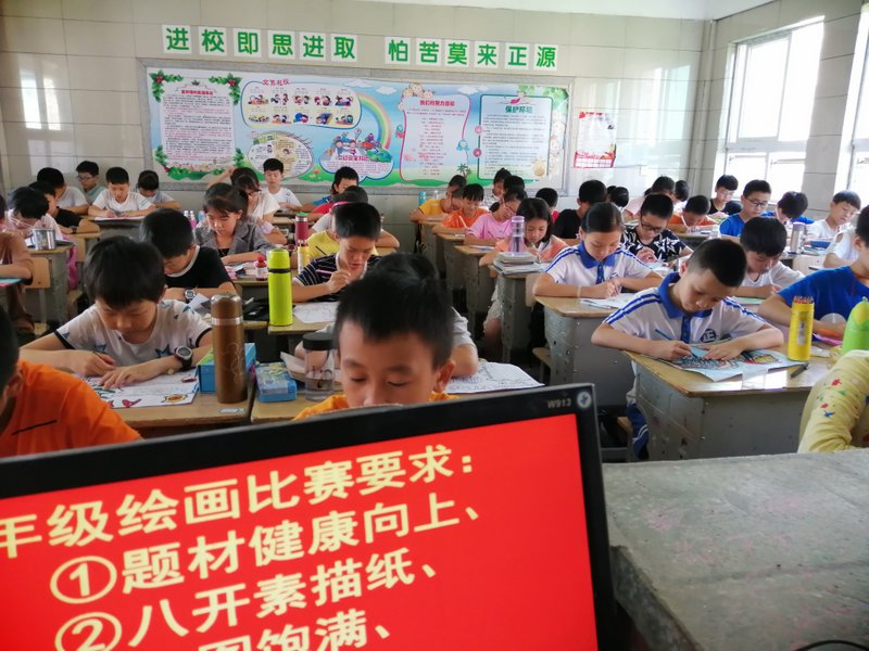 此次比赛,五年级918名学生全体参与。当老师强调绘画比赛要求后,孩子们迫不及待拿起了画笔,纷纷拿出自己的看家本领,或凝思静想,笔在纸上不停比划;或精心勾勒,让画面丰富有趣;或笔走行云,流畅的线条显示出娴熟的技巧,畅快淋漓中尽显小画家本色……