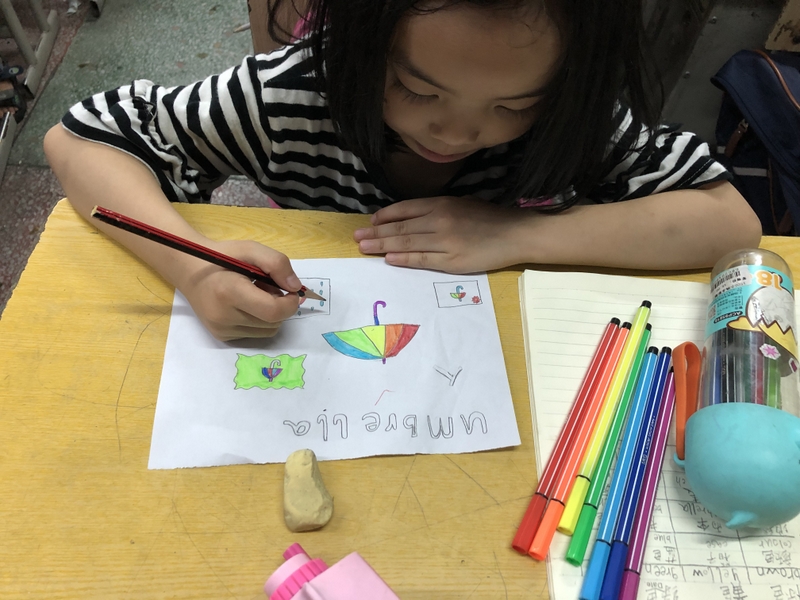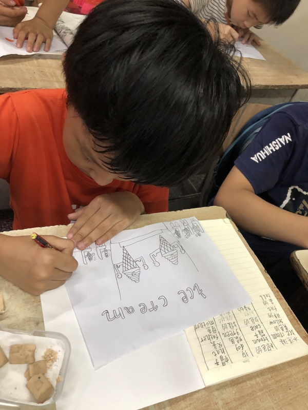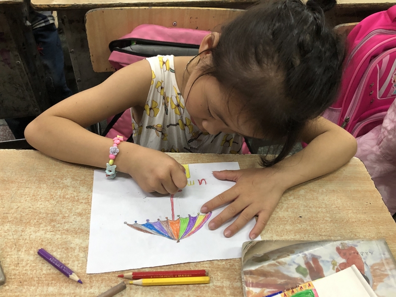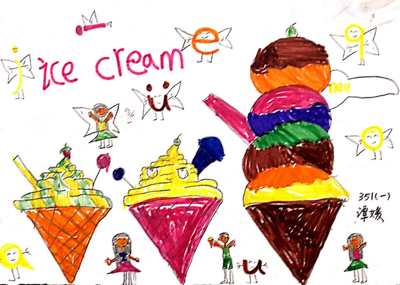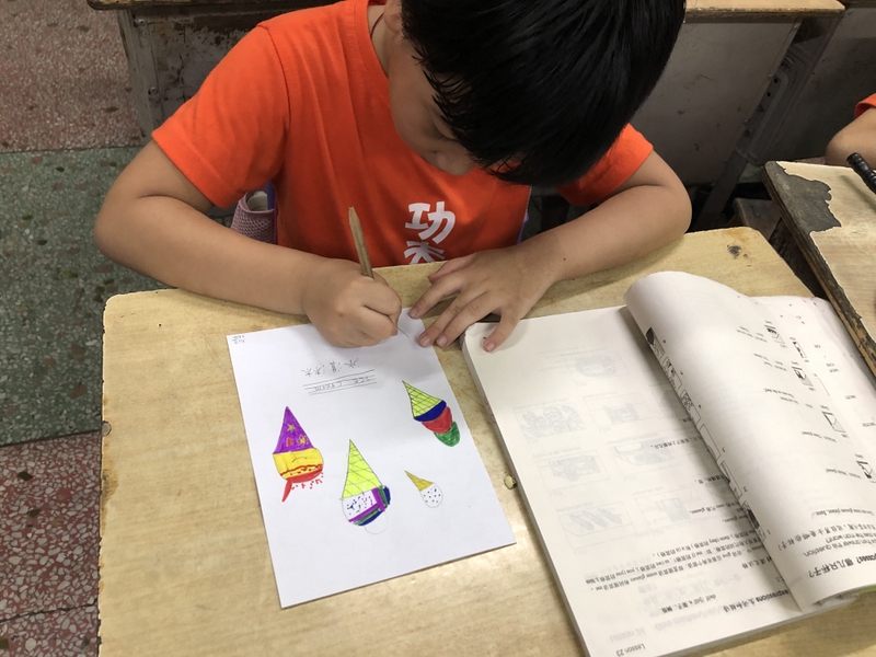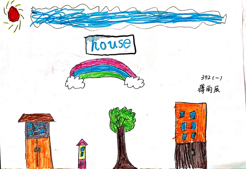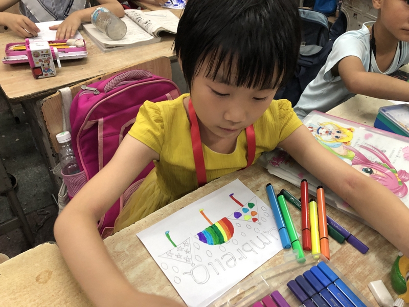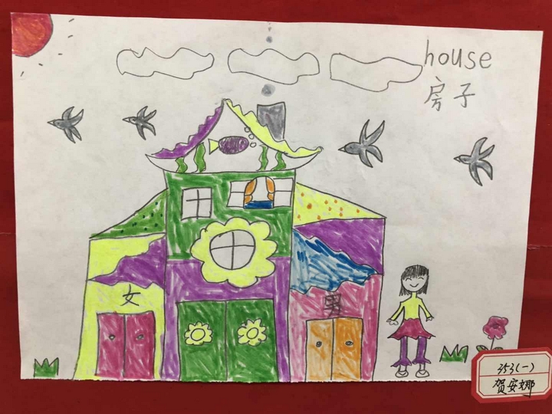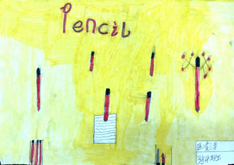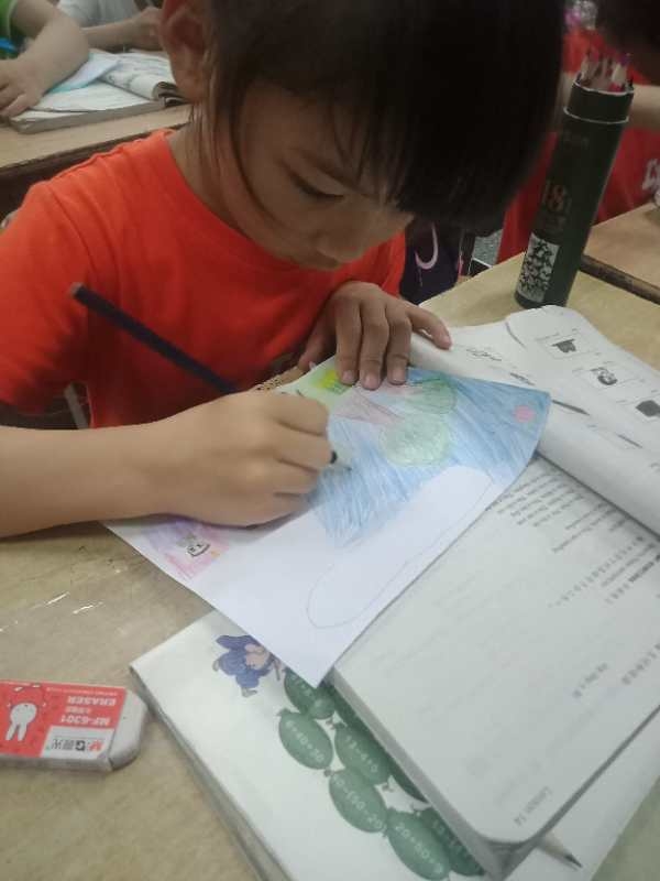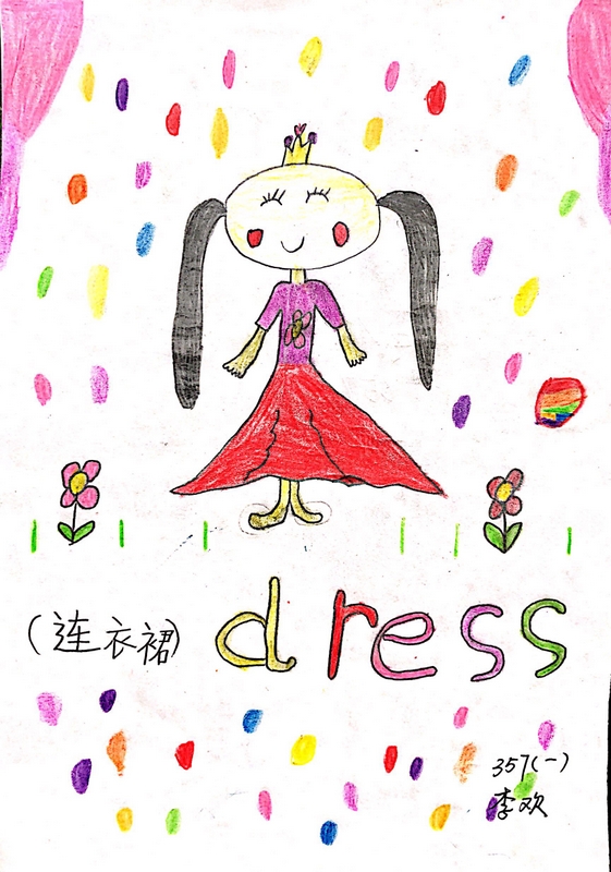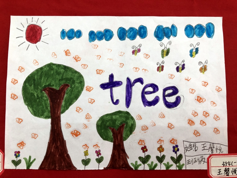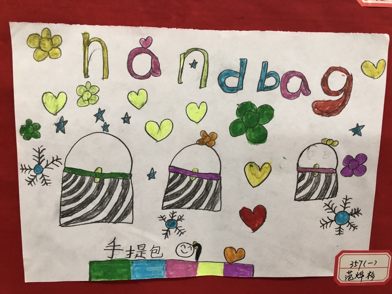 本次单词卡片设计以半张A4纸为材料,要求学生在一小时以内用彩笔正确书写单词,并在纸上设计创意图画。以单词书写正确,图画设计新颖为评分标准。当天晚上各班座无虚席,同学们都早已为比赛做好了准备。随着开赛铃声响起,大家都用心地写画起来。经过一个小时的精心设计和用心书写,同学们都上交了自己满意的作品。
