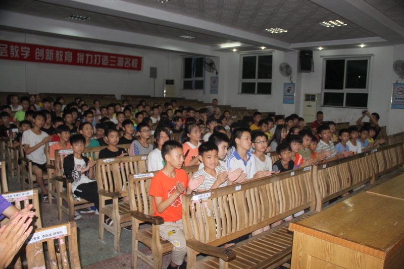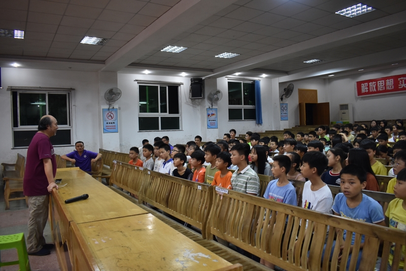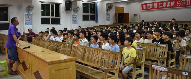 7月5日晚上,初一年级举行暑期艺术夏令营开营仪式,120余名学生参加会议,罗校长出席并讲话。