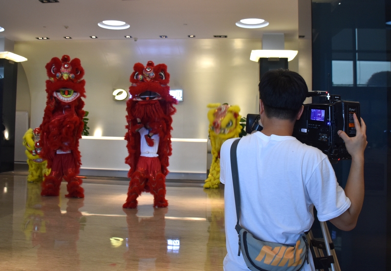 《正源憨狮》音乐欢快,动作潇洒,四只小狮子时而憨态可掬,时而狮威胜虎,整个节目表演得栩栩如生,灵气逼人,经视工作人员纷纷驻足观赏。
