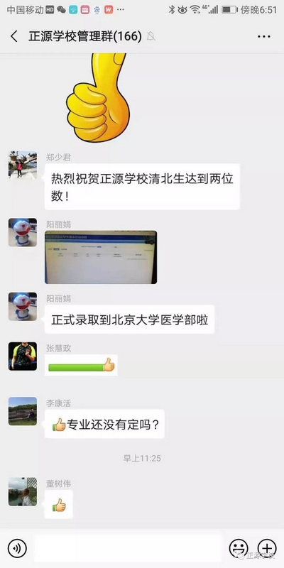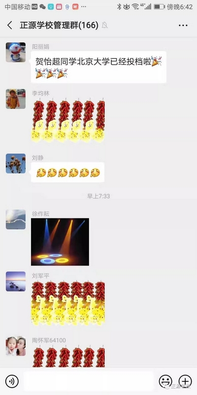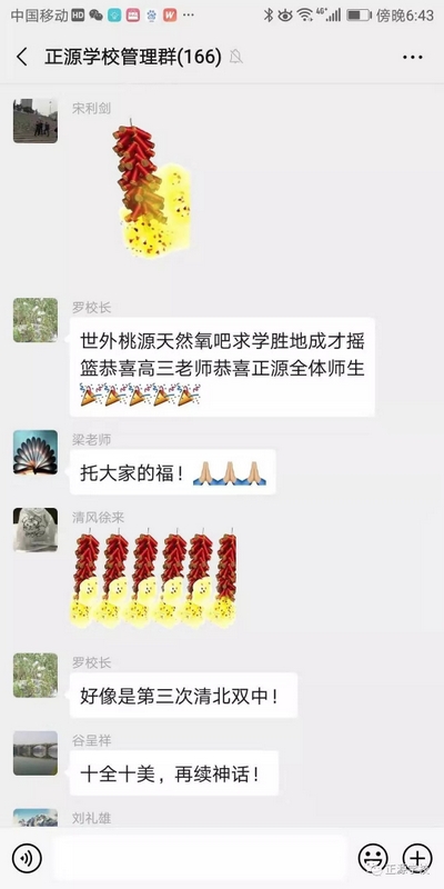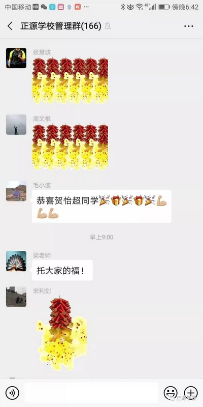 2019年7月22日清晨,正源学校管理群被人事处阳主任的一条信息引爆:“贺怡超同学北京大学已经投档啦”,一时间,管理群成了欢乐的海洋,一条又一条祝贺信息让手机跳了起来,一句又一句祝福让正源的老师们激动万分。