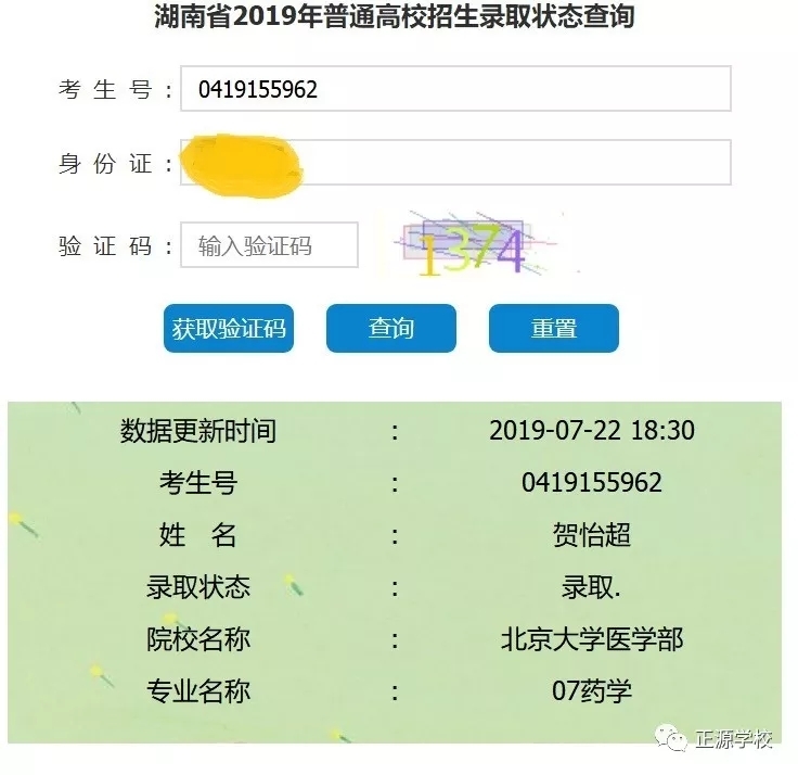 下午16:30,高校招生考试信息管理系统再次更新,贺怡超被北京大学医学部录取!继黄兰毅成为第九个被清华北大录取的正源学子,贺怡超再次刷新正源清北录取人数,8年,10人!首破两位数!