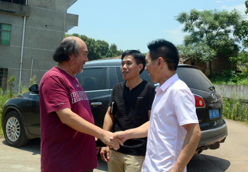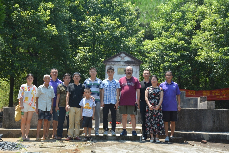 王紫峰的侄孙王必成(左一)陪同校长拜谒王紫峰将军墓