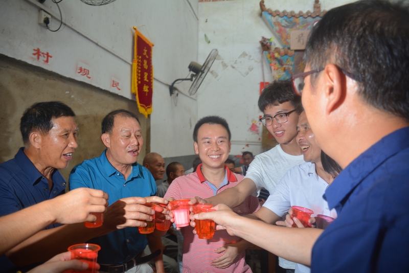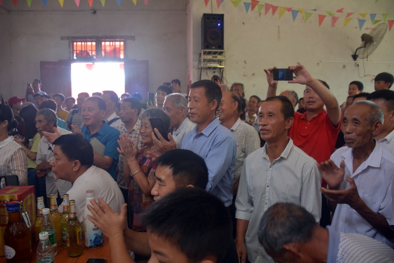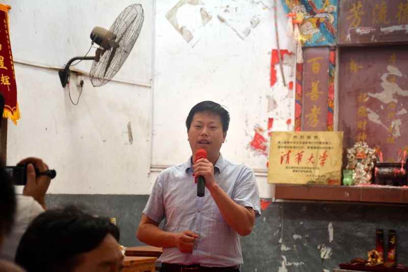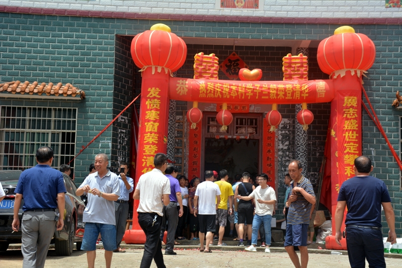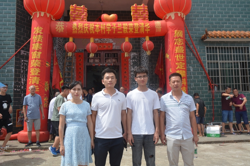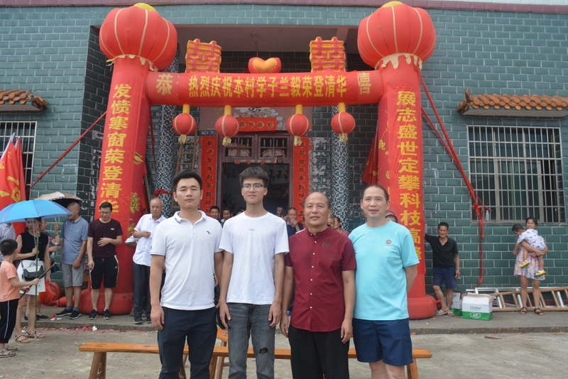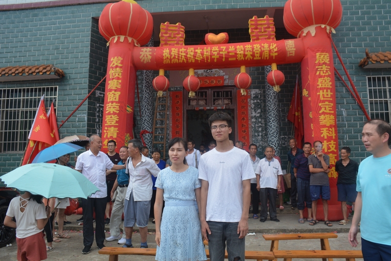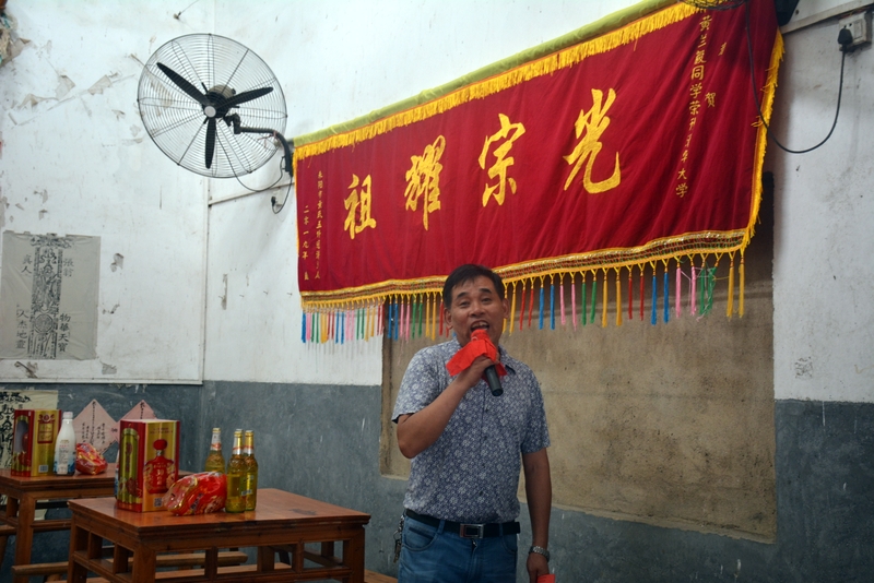 祠堂里,人头攒动,正厅的墙上高挂“光宗耀祖”四字锦旗,乡亲们把仪式台围了个水泄不通。升学宴用餐前董事长梁晓斌发表贺辞,他说,长坪地处偏僻,黄兰毅能考上清华大学,说明长坪人杰地灵,也希望他能够继续取得更好的成绩,回报家乡父老乡亲,回报学校。