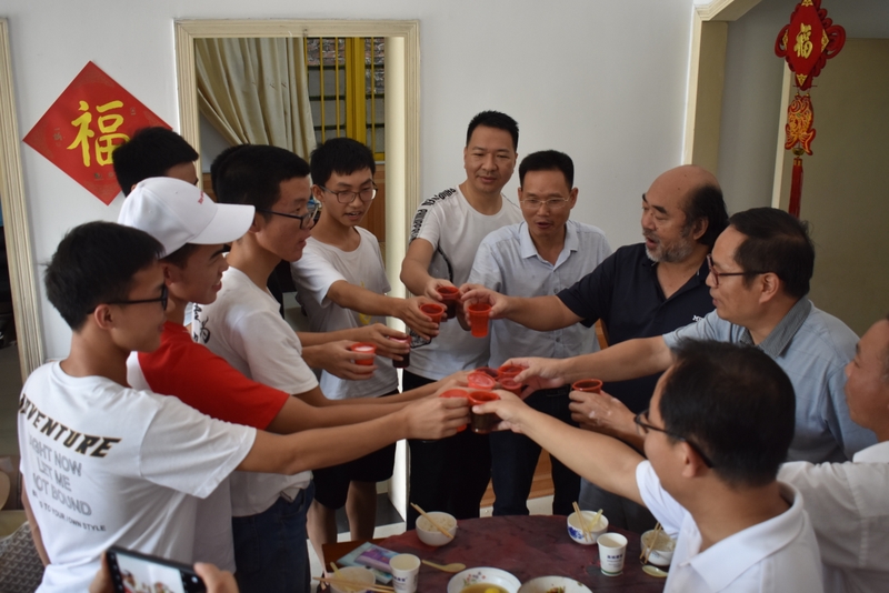 今天(8月6日)是刘德宇家大喜的日子,刘家大宴宾客,庆祝今年从正源毕业的小儿子刘硕考取中国人民解放军海军航空大学。罗校长率刘硕的班主任李康活等老师受邀前往三都镇明冲八组赴宴。