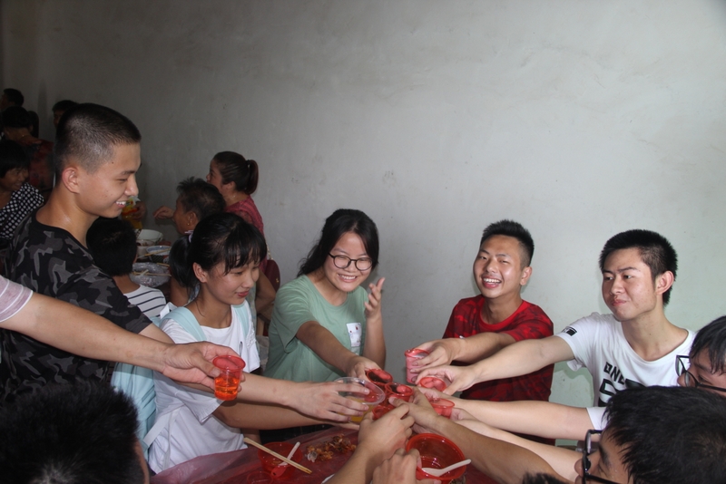 8月10日,曾佳维同学一家在老家小水镇群力村设宴,庆祝曾维佳考取中国人民解放军空军工程大学,曾佳维的高中班主任李康活、科任老师、同学等受邀赴宴。