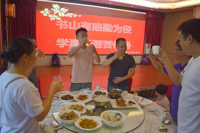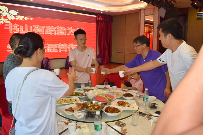 8月18日,以608分考取大连理工大学的蒋文凯一家,在文化路耒耕坊举办升学宴,年级主任陈斌及初高中老师受邀参加。