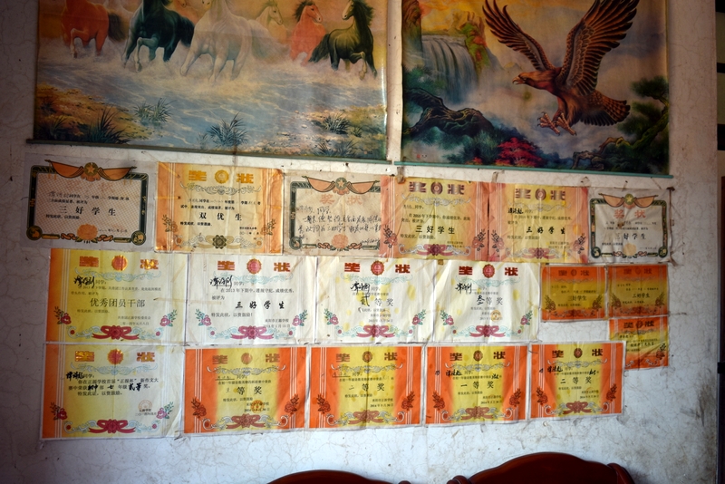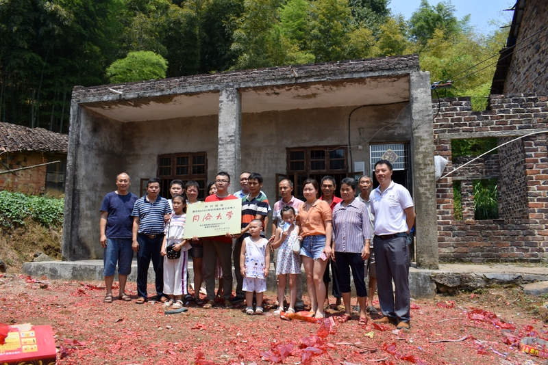 步行至村里一座小山脚下,一间平房映入老师眼帘,房前的土坪散落着鞭炮残屑,几个烟花堆放在一旁,台阶上坐着几位客人,看见老师们的到来,纷纷站起来欢迎道贺。一阵寒暄以后,老师们被热情地邀请进家里坐。两张床,两张桌子,简单的几件家具一目了然,几条长板凳上坐着20多个前来祝贺的宾客,把仅有的几十平方房子塞得满满当当,挂在墙上那块正源学校颁发的奖牌算是最时髦最亮丽的装饰品。这就是高考以653分优异成绩考取同济大学谭诗彪的家。