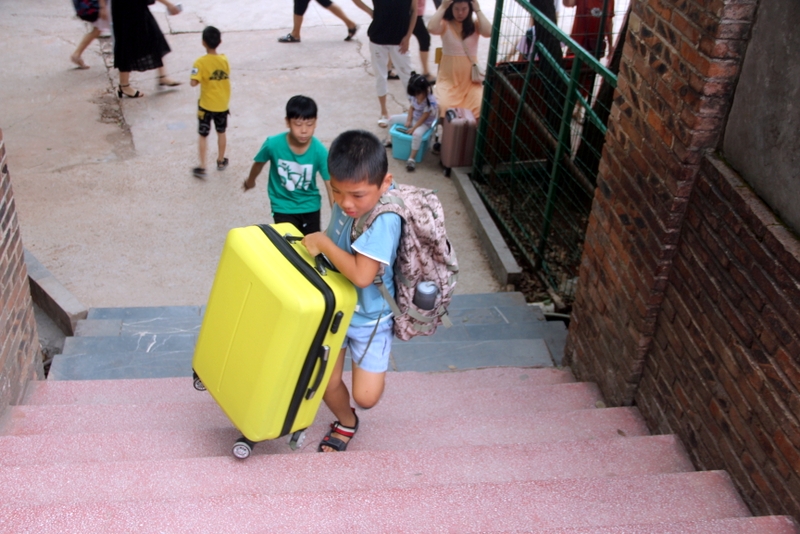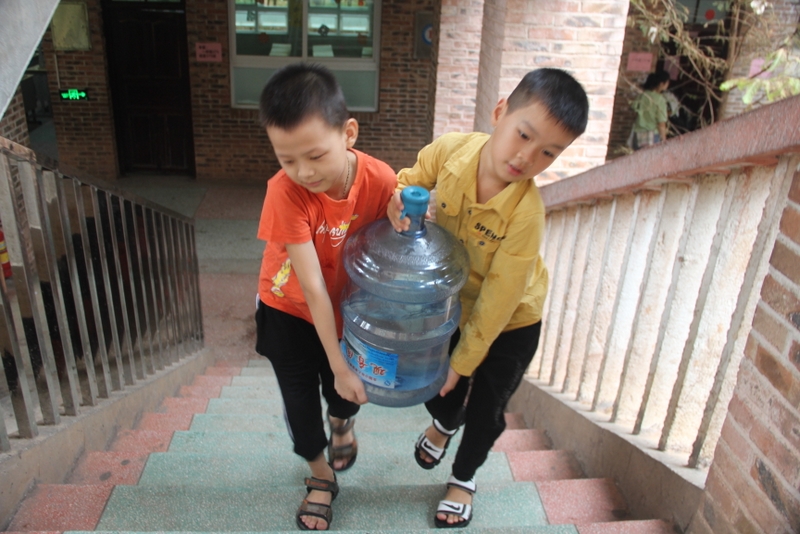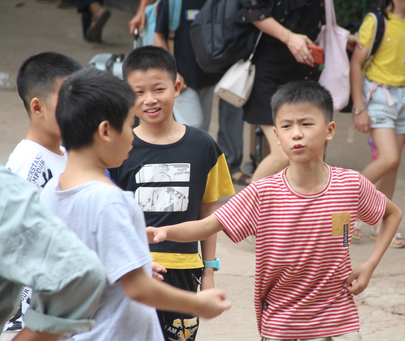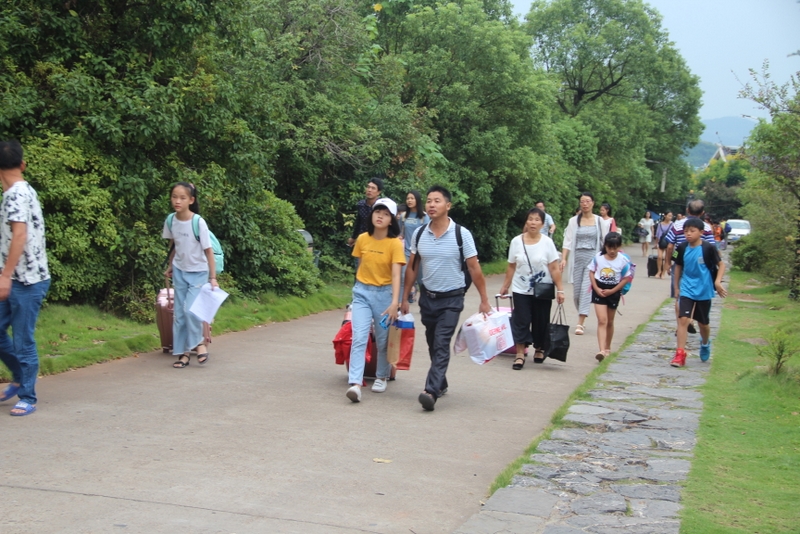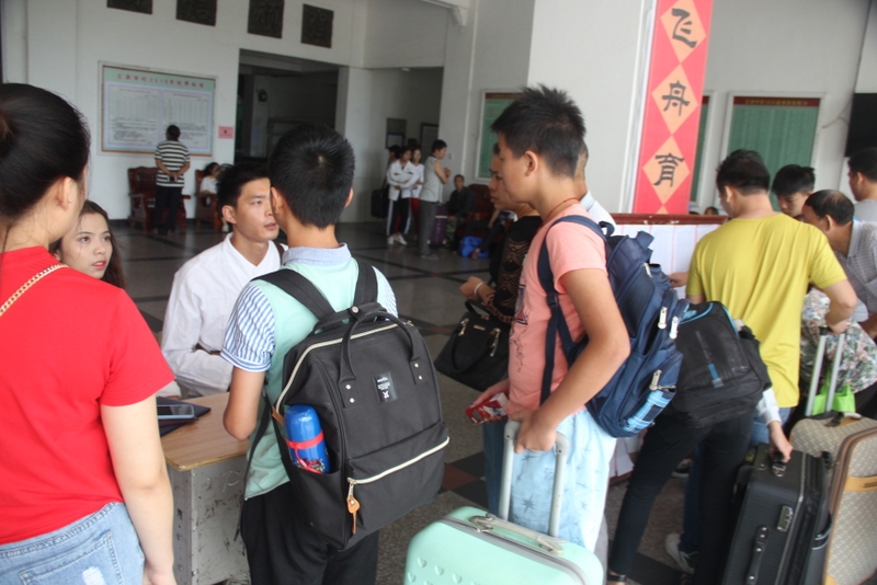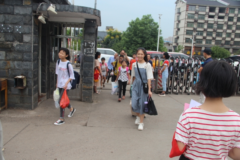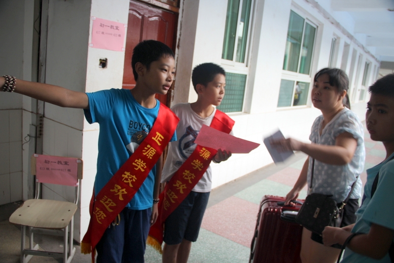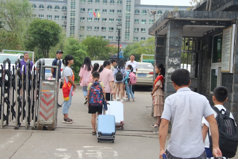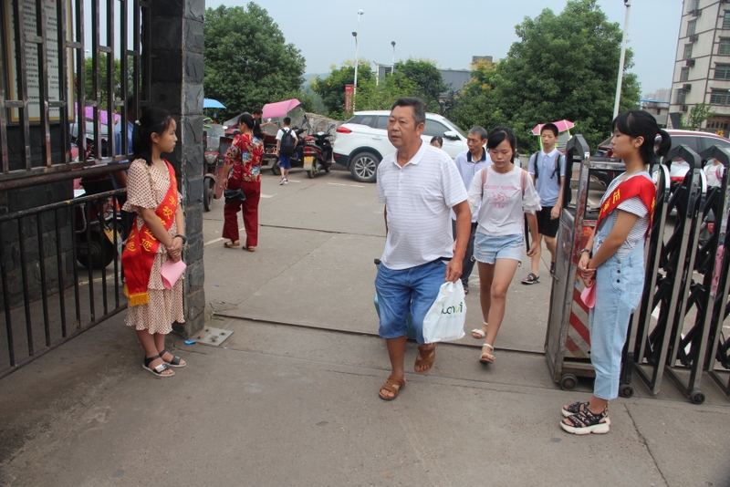 礼宾学生在校门迎接