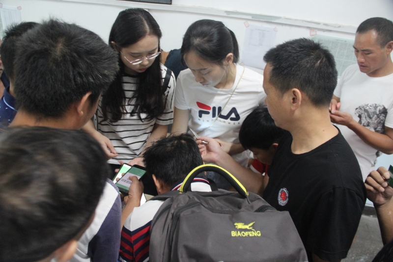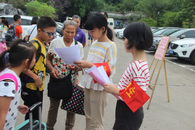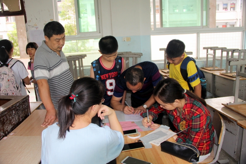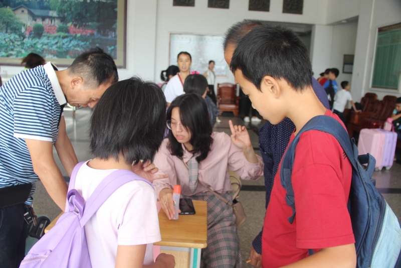 值日学生细心为家长指点