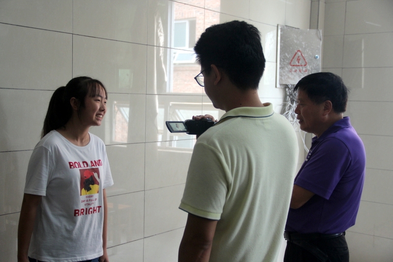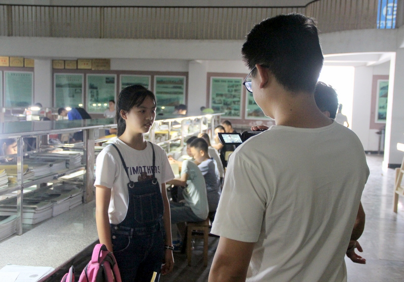 准高一刘雅萱同学(左)接受采访
