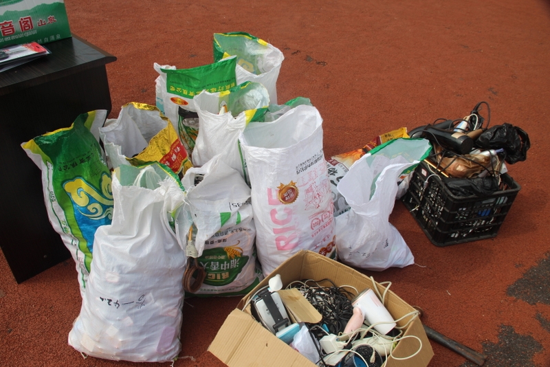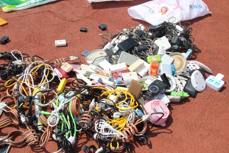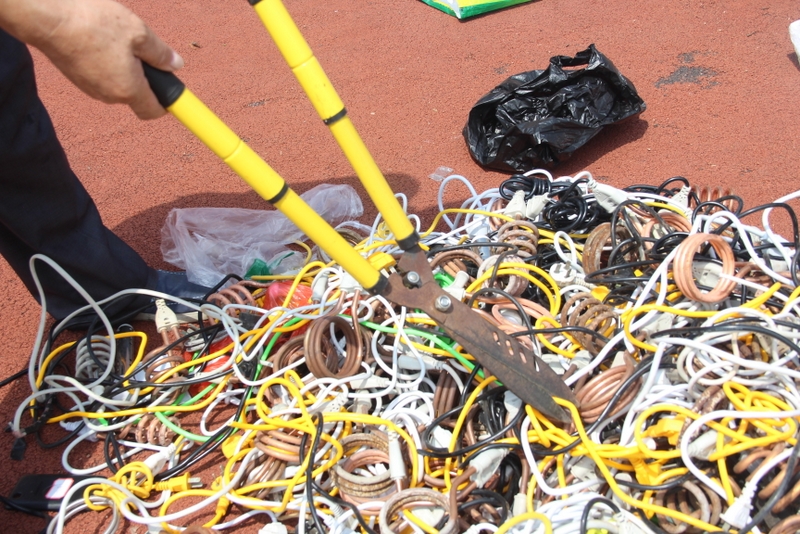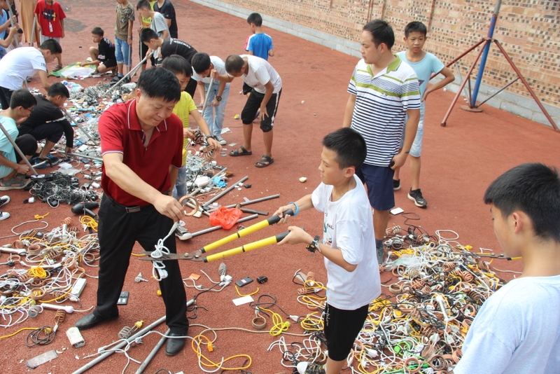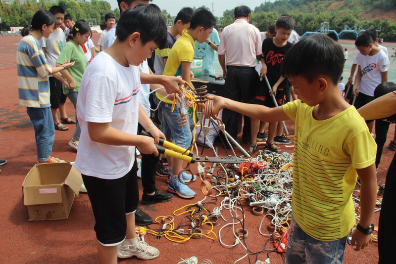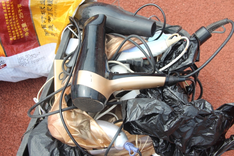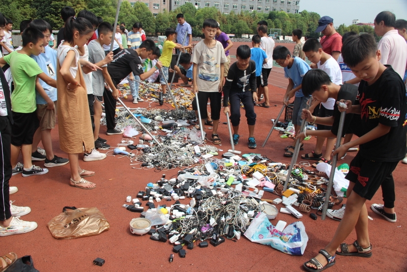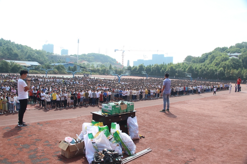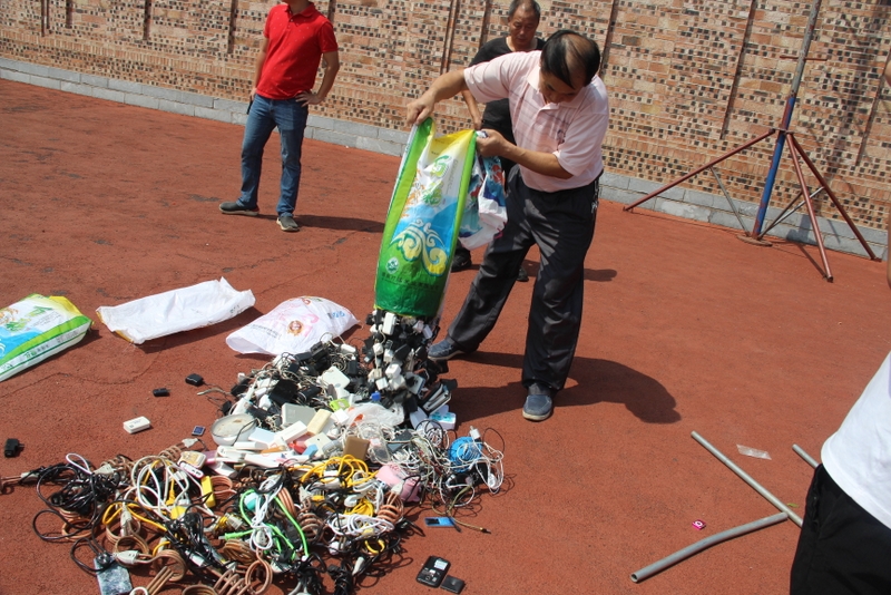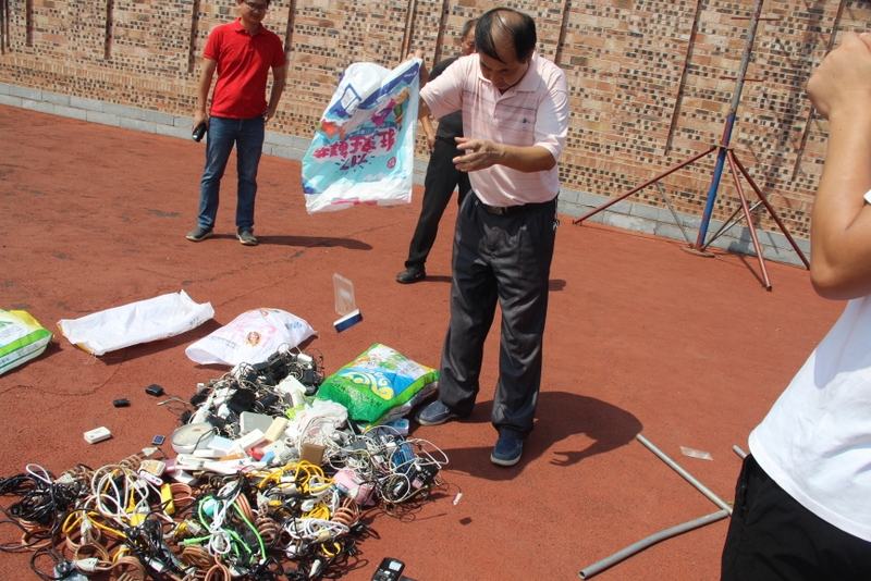 之后,部分学生代表走上主席台,他们拿起锤子、剪铗、钢管,将近年收缴的300多部手机、MP3、MP4等视听产品粉身碎骨,将热得快、充电器等物品的电线剪得稀乱,噔噔噔噔的敲砸声,咔嚓咔嚓的剪切声震撼着大地,震撼着每一个学生的心灵。