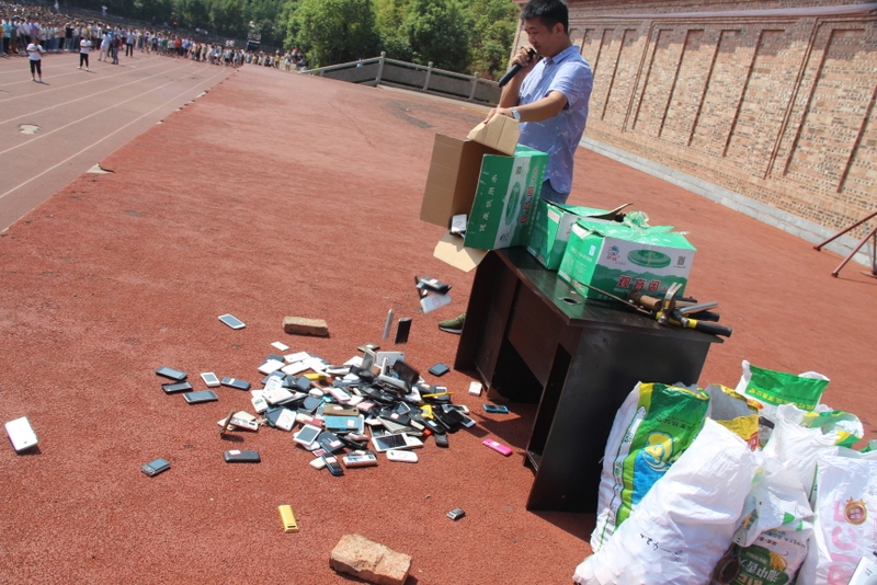 9月5日上午十点,一场别开生面的活动——正源学校举行禁止电子产品进校园警示教育活动即将在中学生运动场上演,只见主席台上摆满了各式手机、热得快、电吹风等物品,主席台下高中部和艺术部的6000余名学生,他们将共同见证砸毁这些违规使用的电子产品的壮举,见证学校壮士断腕、向手机决裂的坚定决心。