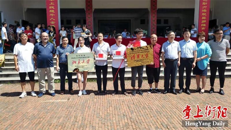 贺怡超同学被北京大学录取,奖金10万元;黄兰毅同学被清华大学录取,奖金10万元……8月1日,耒阳市正源学校2019年高考庆功会暨“文军奖学金”颁奖仪式在该校广场举行。80名在高考中取得优异成绩的学子获嘉奖。现场共发放现金奖励32万元,平板电脑80台。今年高考该校再创佳绩,考取二本以上学子达1105人,其中一本上线602人,600分以上78人,1人考入北京大学,1人被清华大学录取。